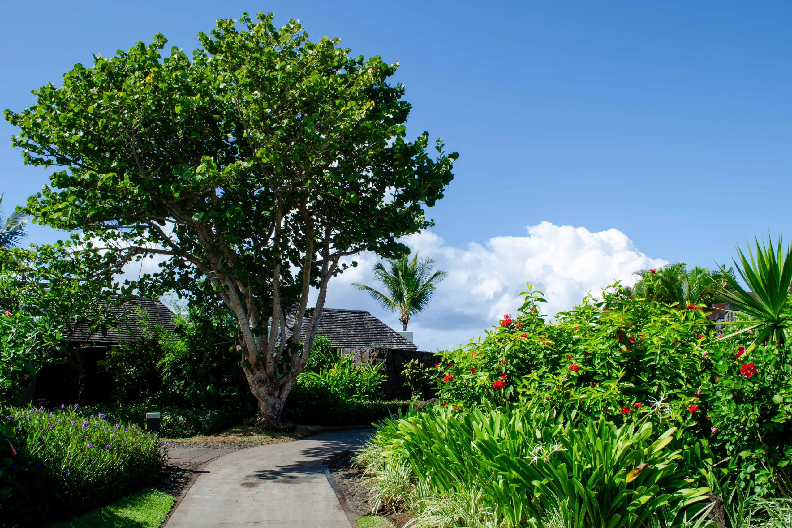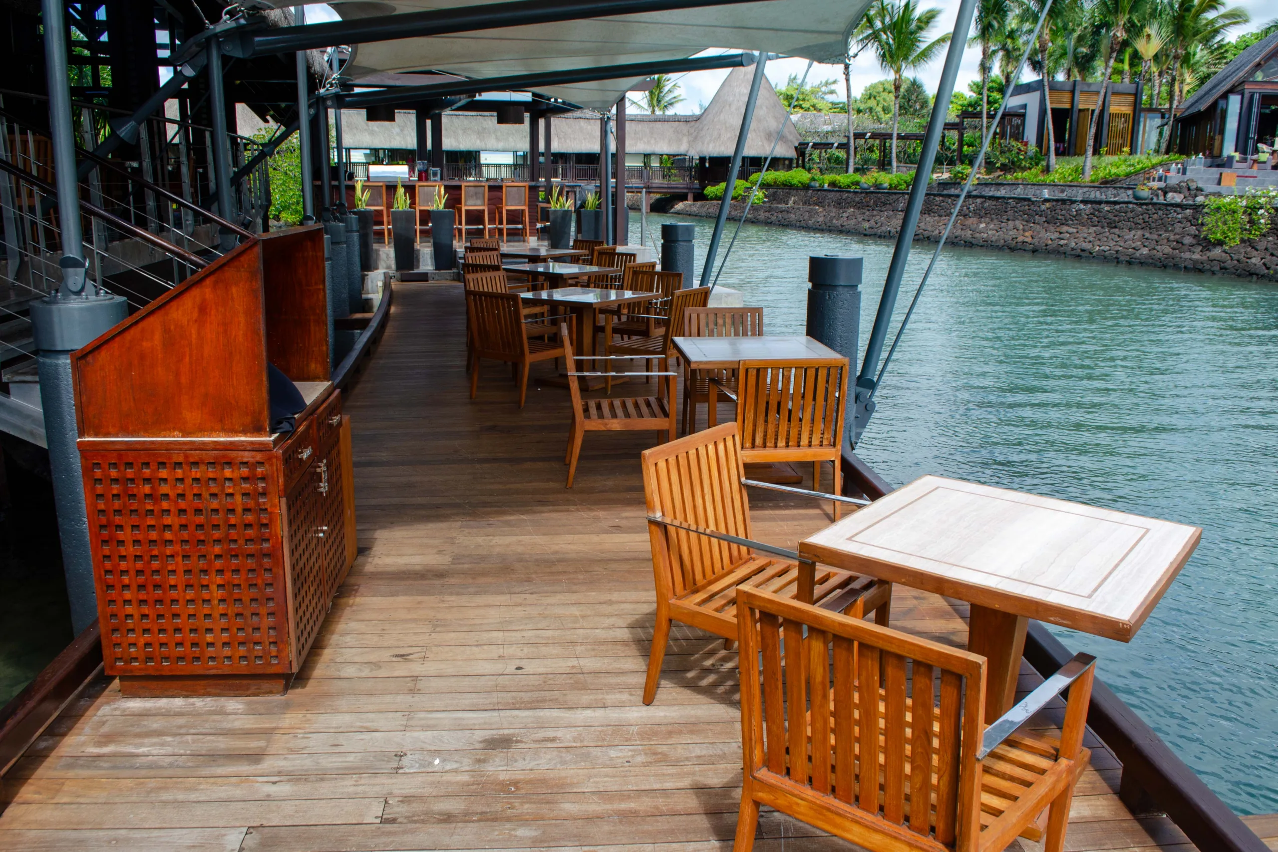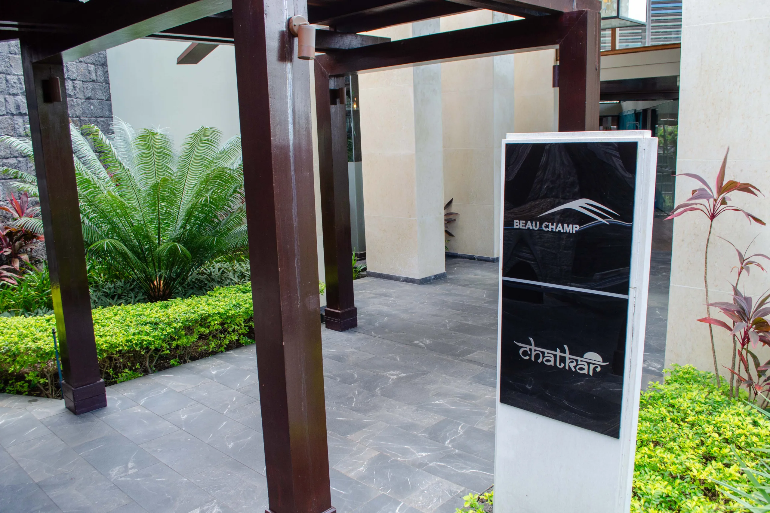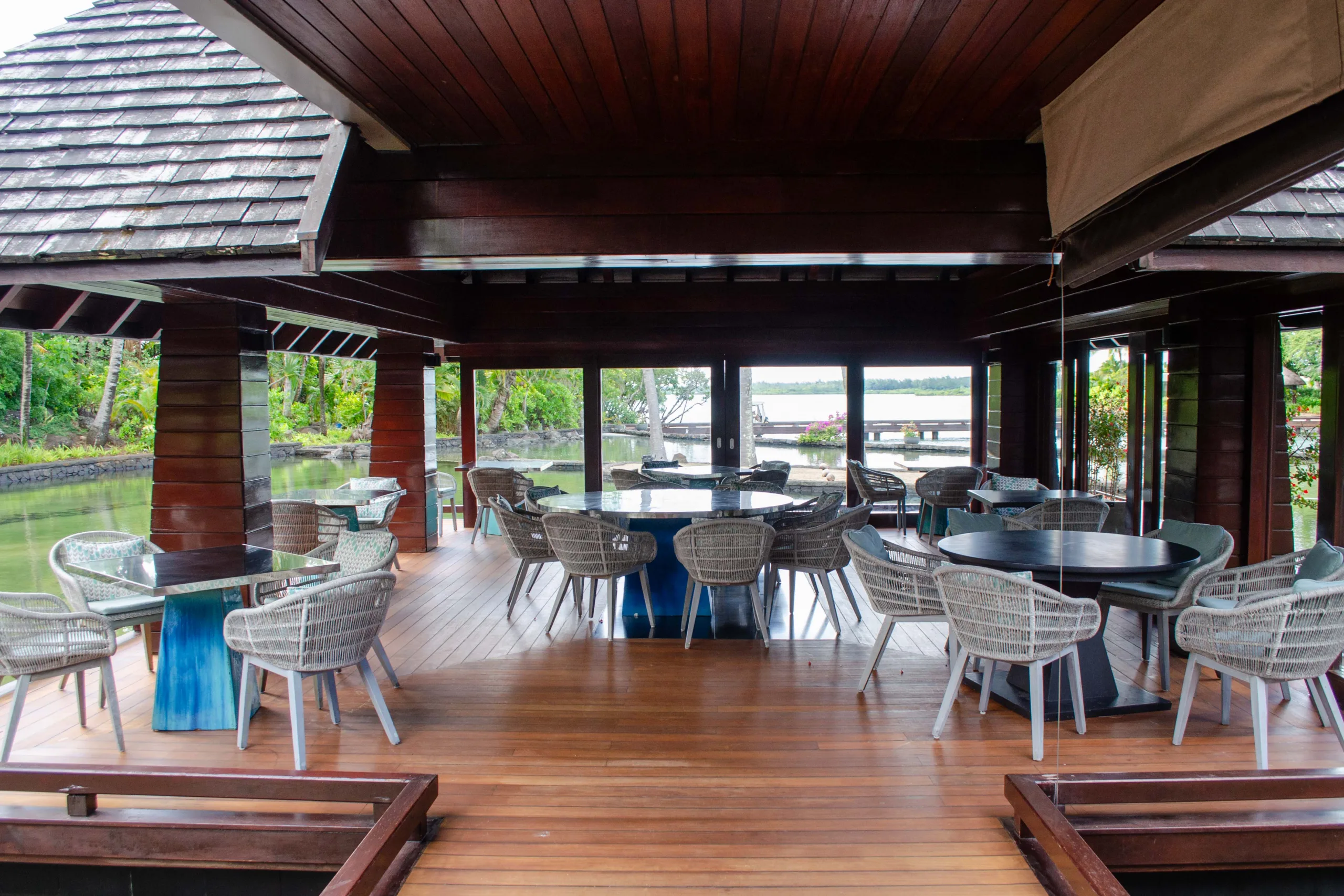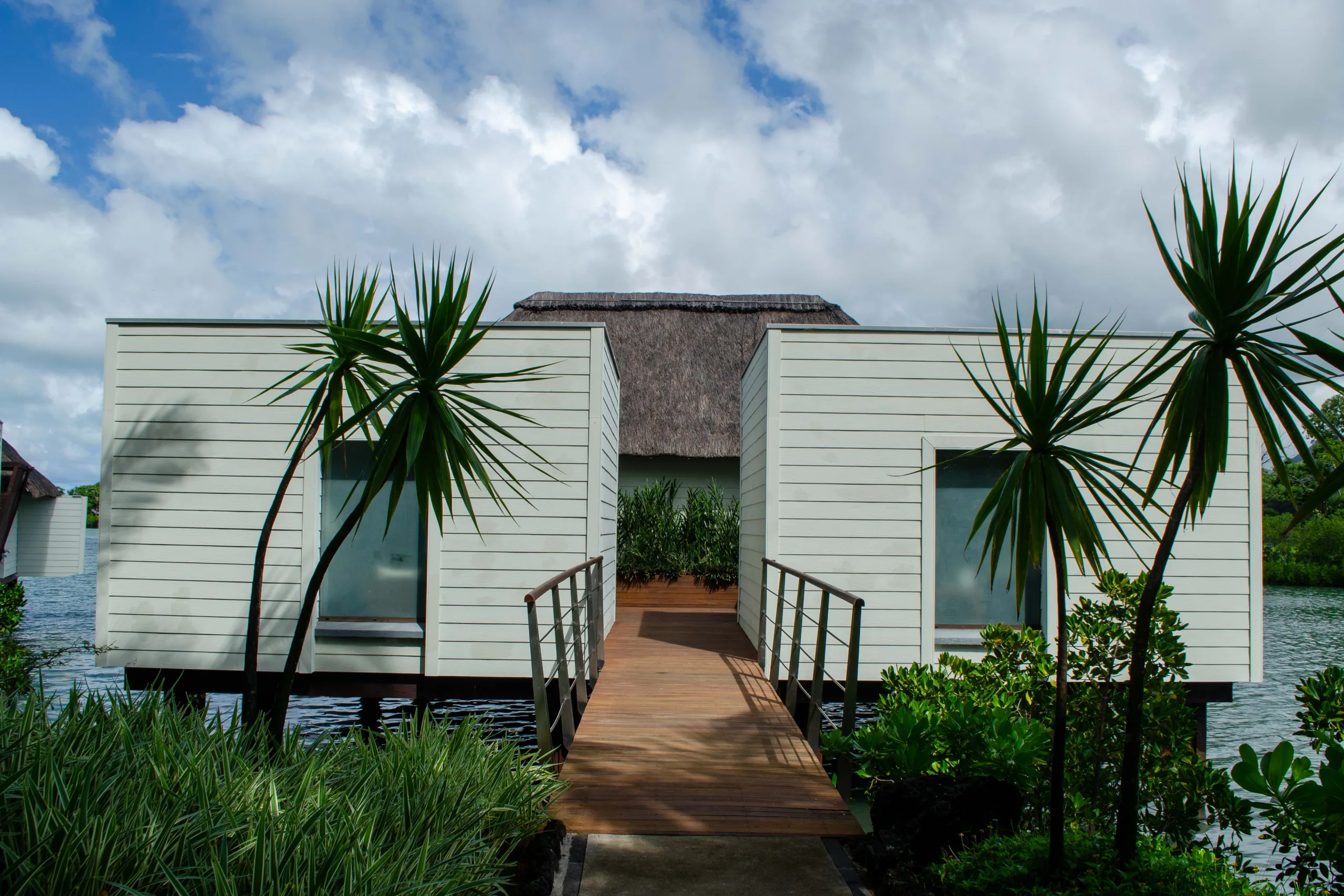 Established in 2008, the resort integrates contemporary Mauritian style with its natural surroundings through open-air architecture.