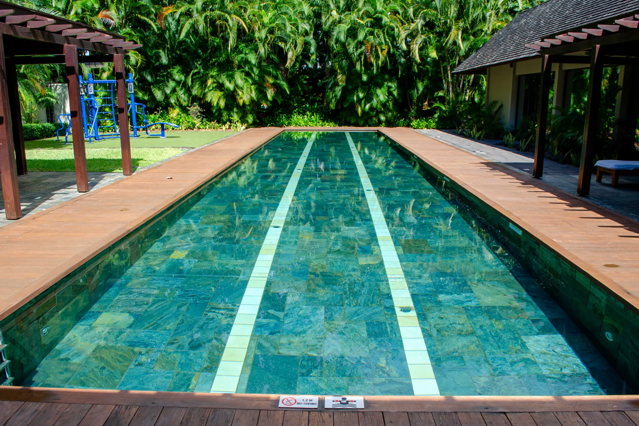 The lap pool is distinct from the main leisure pools of the resort, and is more suited for those looking to engage in serious swimming exercises rather than leisurely lounging.