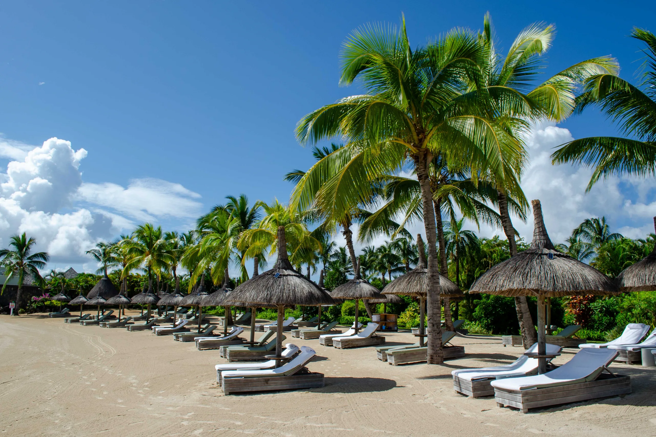 The private beach club on Ile aux Cerfs, accessible via a short 15-minute speedboat ride, is a haven of white-sand beaches and turquoise lagoon waters.