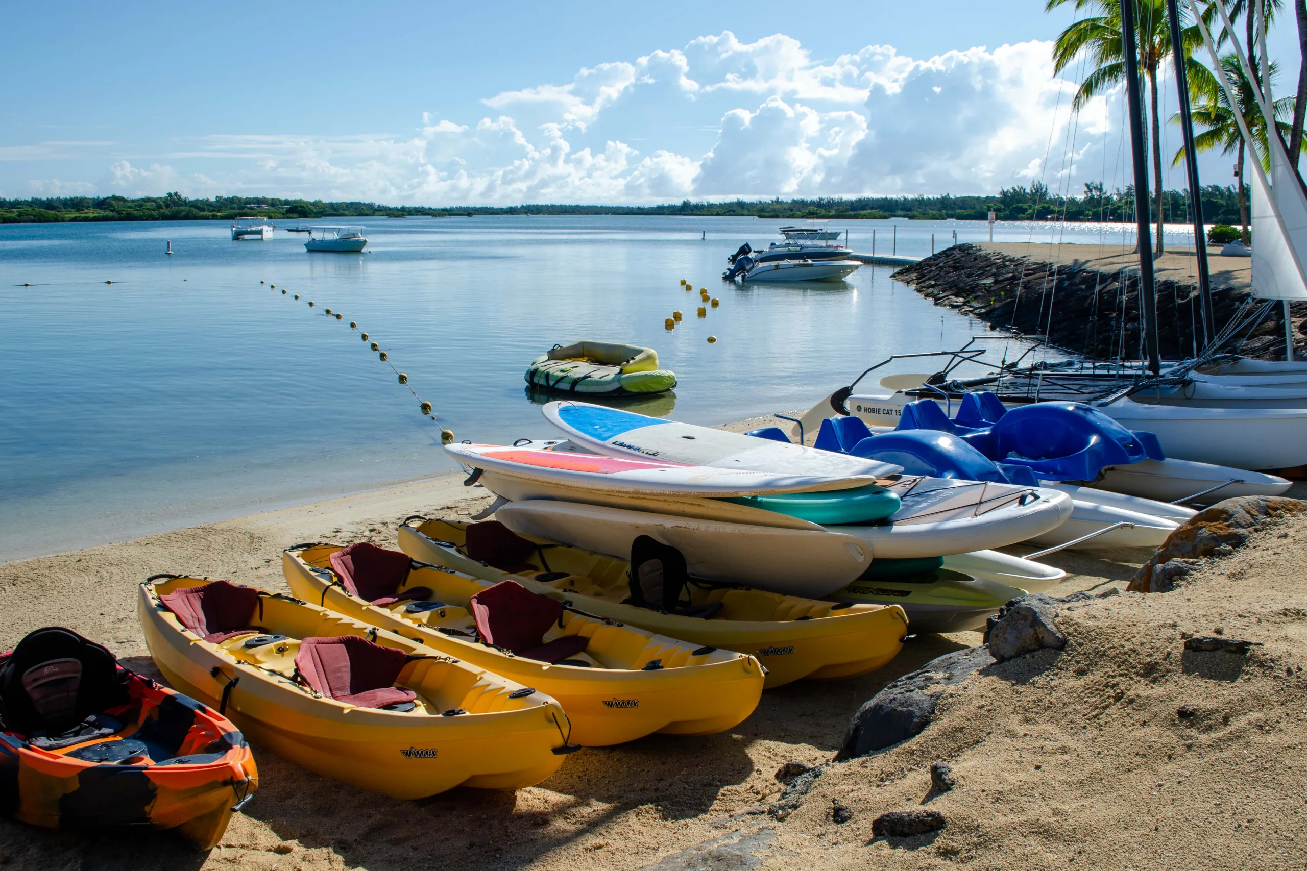 Bambou Beach, located in front of the main pool area, is a hive of activity with its water sports club offering complimentary non-motorized water sports.