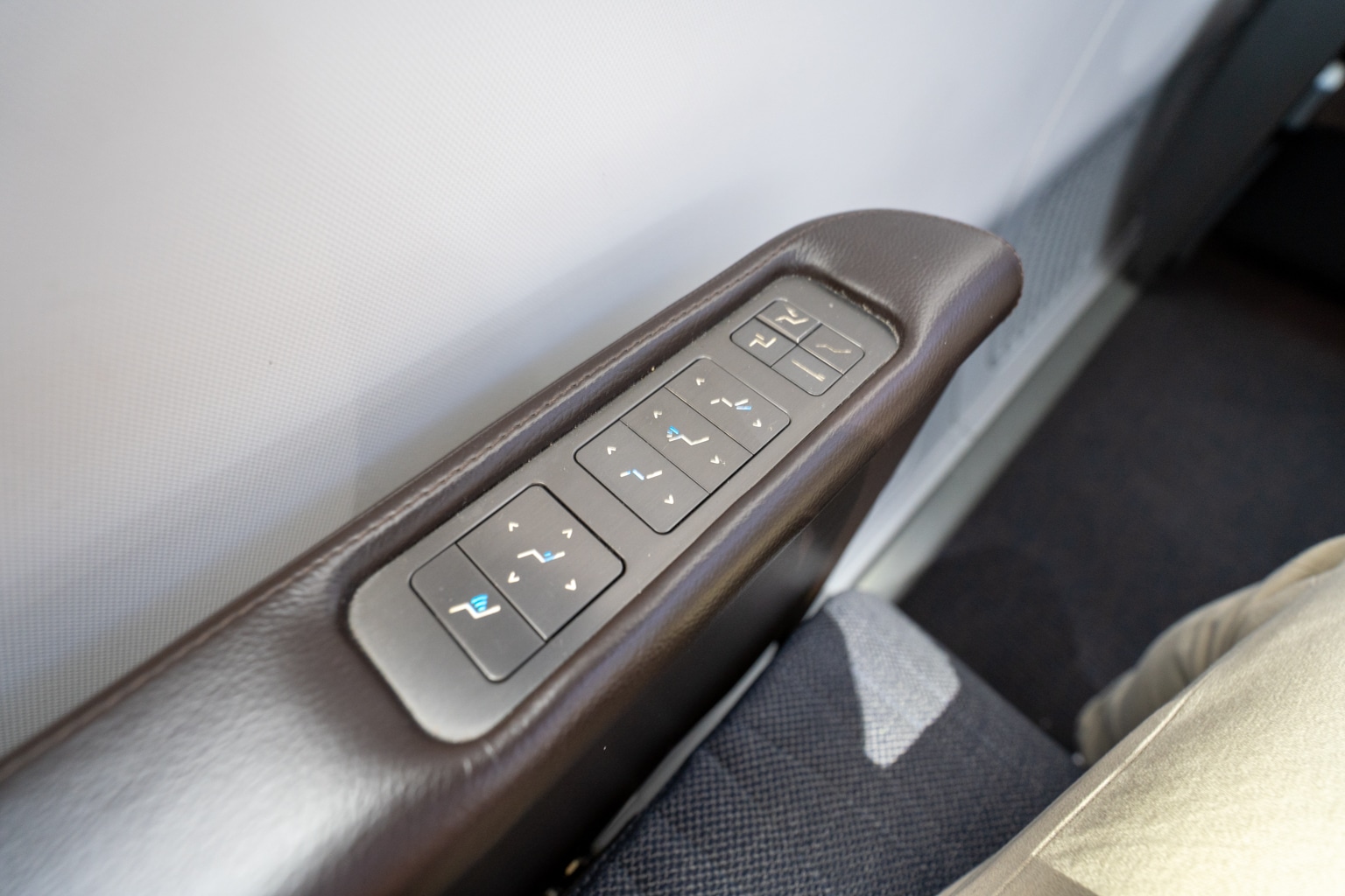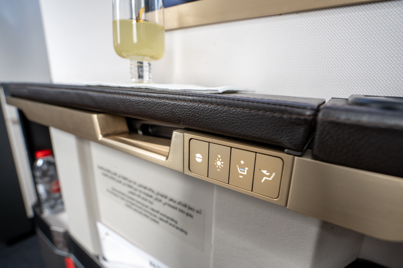 On the other side of the seat are four more controls, where you can raise the all-important partition to your neighbour, creating a truly private cocoon here by the windows.
