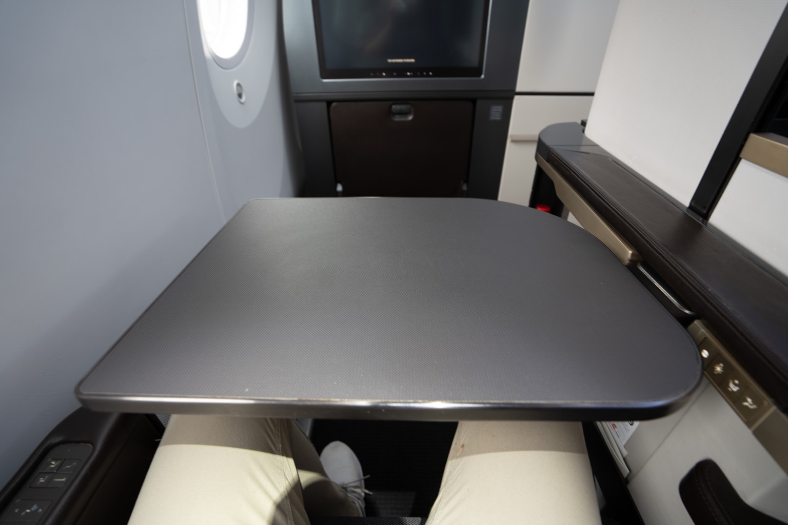 Indeed, I was very happy with my legroom, as there aren’t any neighbouring seat shells to get in the way of your tossing and turning while you rest.