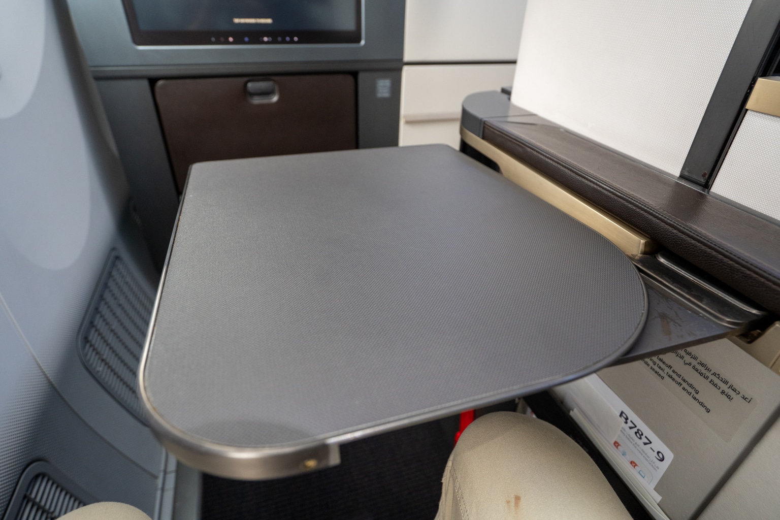 However, the airline doesn’t quite live up to the same hyped-up standards as its regional rivals like Qatar Airways, Etihad Airways, and Emirates at this stage in the game. The impressive hard product is let down by imperfect upkeep, while the onboard food and service didn’t quite hit the highest of high notes that airlines from this region are known for.