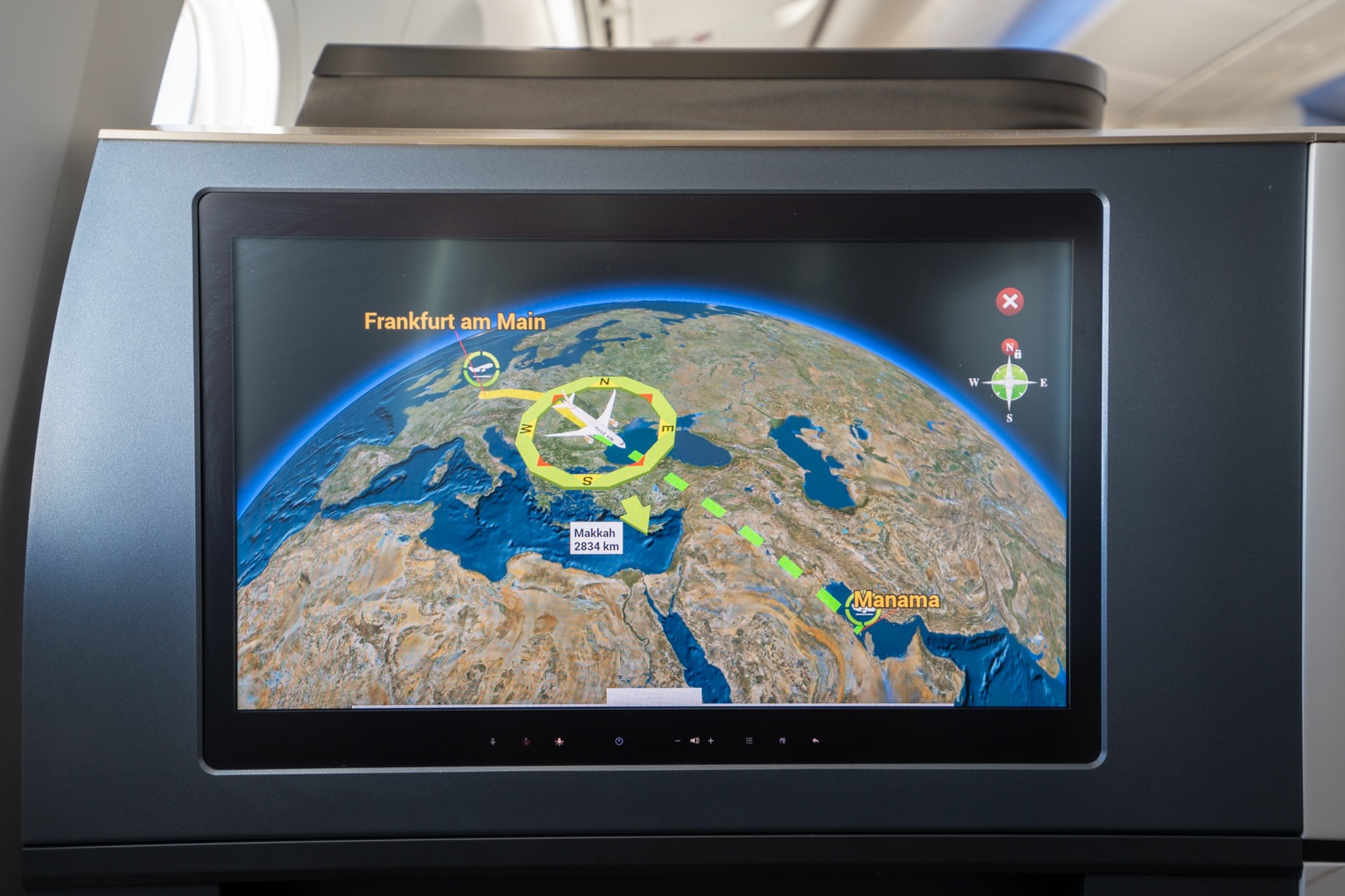 When I woke up, I noticed that night had fallen outside, and we were a couple minutes out from making our descent, eventually completing an evening touchdown in Bahrain at 7pm local time.