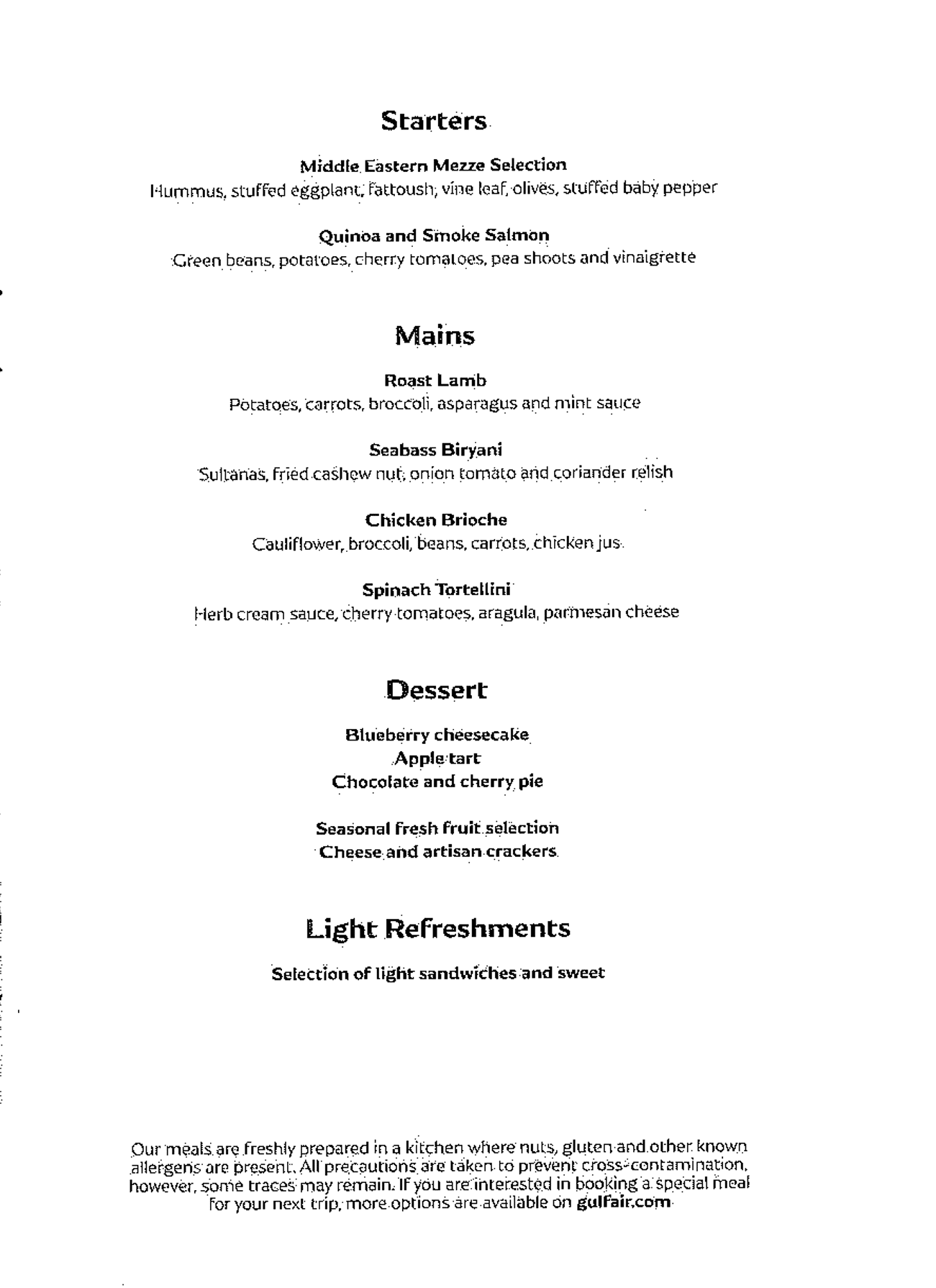 Gulf Air 787 Business Class – Meal Service
