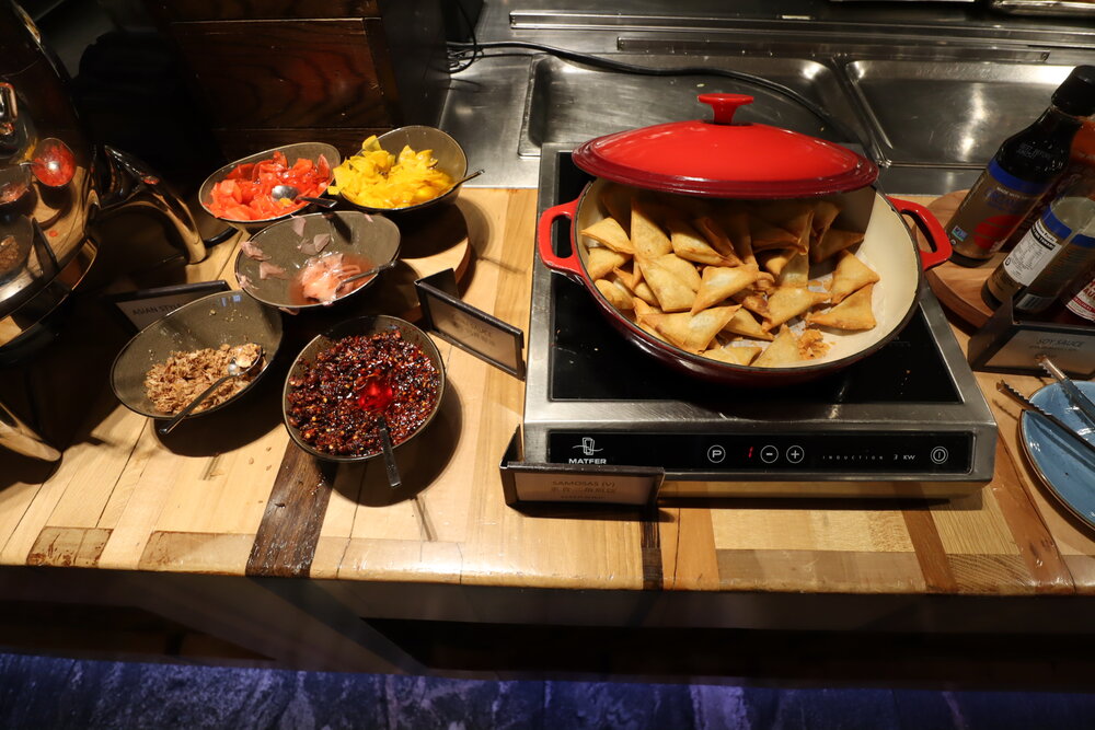 The breakfast buffet had a mostly Western focus, with a single Asian dish of vegetarian fried rice available as well. Beyond the standard hot breakfast items, some of the more unique offerings included a selection of healthy juice shots and a large chilled display for the salads, cold cuts, fruits, and yogurts.
