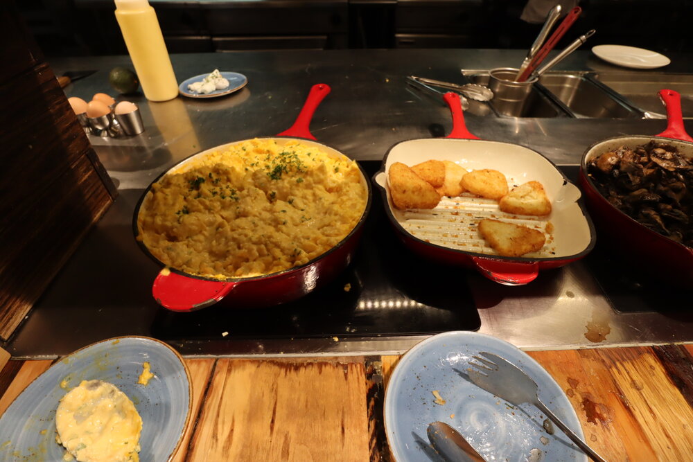 In addition to the buffet, Gold and Diamond members may also order unlimited items from an à la carte menu. Jessy and I ordered an Eggs Benedict with salmon, which was served on a piece of toast rather than the customary English muffin, as well as the blueberry pancakes, which were excellent.