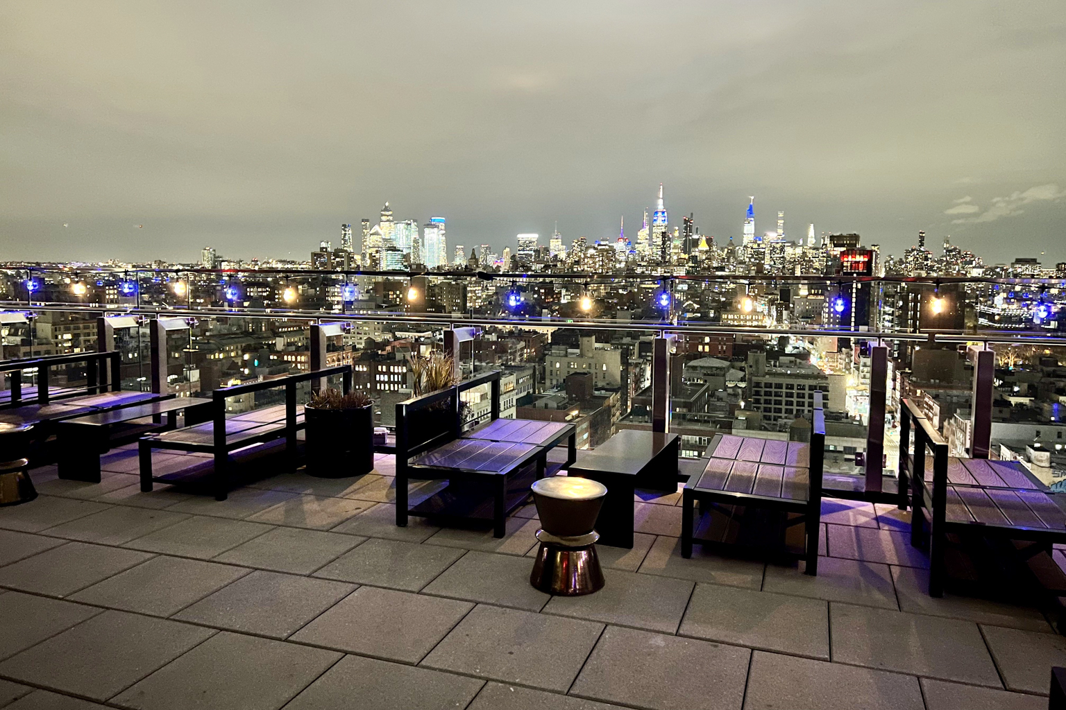 On the 21st floor is where you can find the hotel’s rooftop bar and lounge, The Crown. The space is about 5,000 square feet and includes an outdoor terrace with seating with impressive views of the New York skyline.