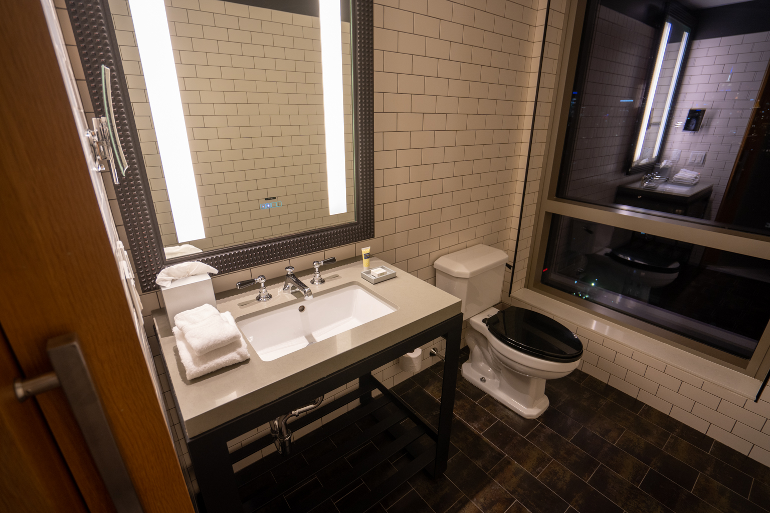 There was a second two-piece bathroom located in the suite, complete with another toilet, a sink, and LED mirror.