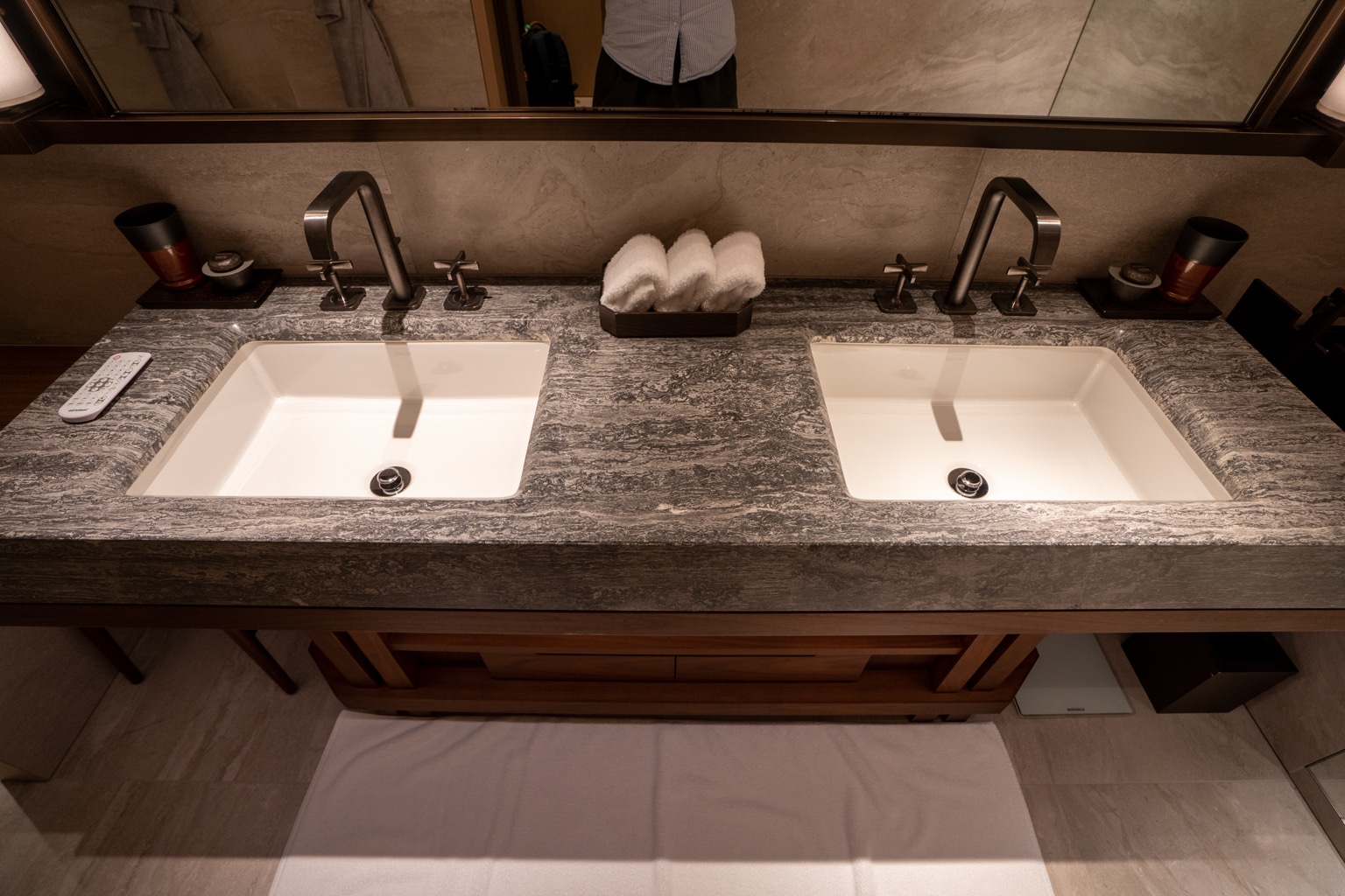 My favourite feature of the bathroom was the smooth-to-touch stone countertops with a honed finish. The impressive detailing and crisp surface of the counters really encapsulated the high-quality design and the tasteful materials used throughout the hotel.