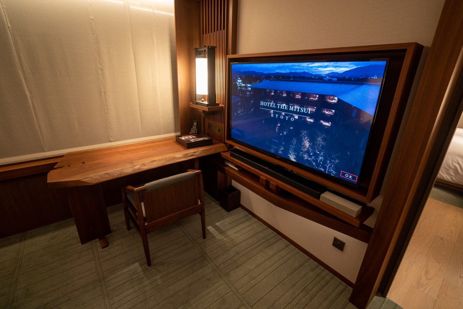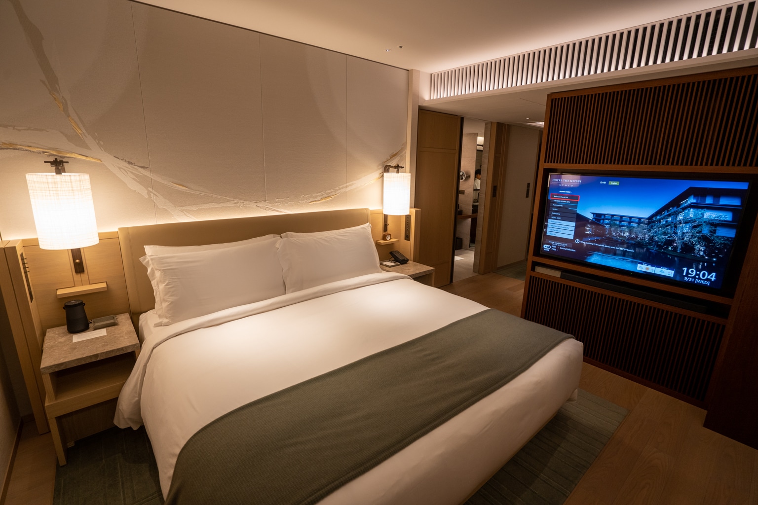 The guest room interiors at the Mitsui Kyoto were inspired by Japanese tea houses with a modern twist, which is immediately notable upon entry.