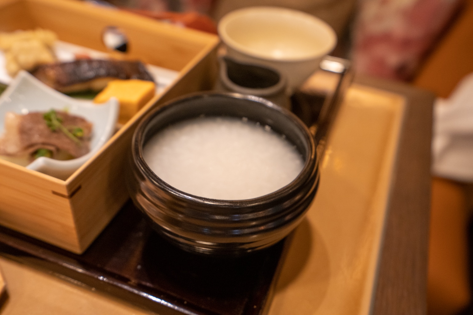 There was the option between miso cod or salmon as your fish item, and then a choice between rice and congee. We decided to try a bit of each.