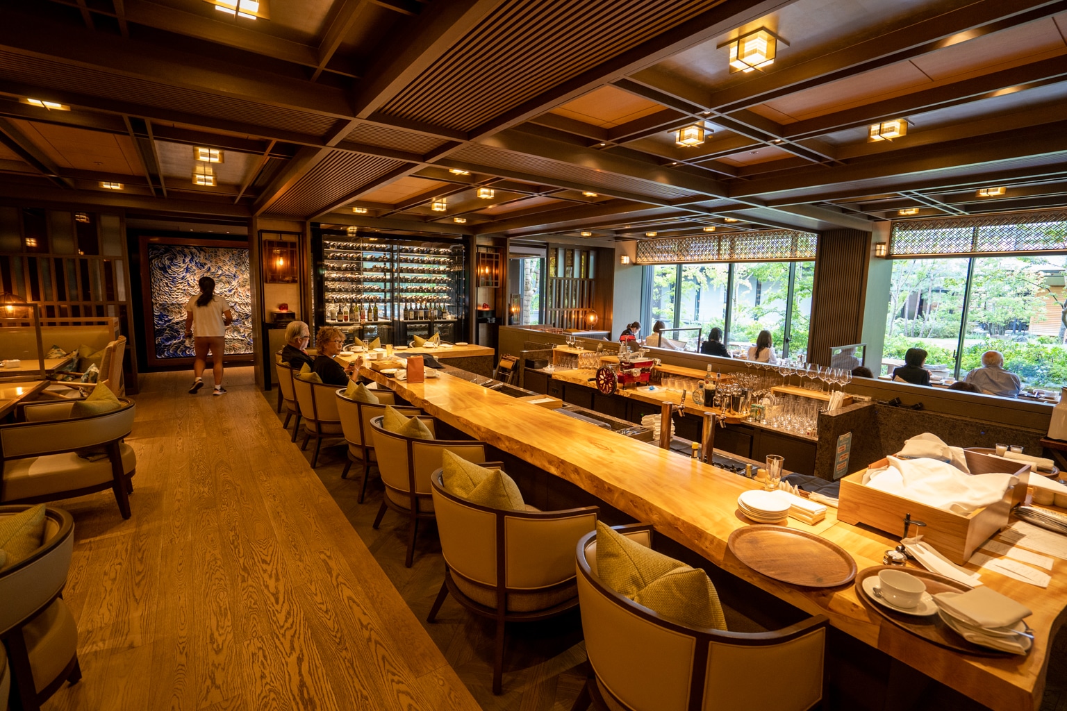The Garden Bar is a relaxing environment for evening cocktails while overlooking the gardens. The bar has a wide selection of cocktails, spirits, whiskeys, wine, and sake.