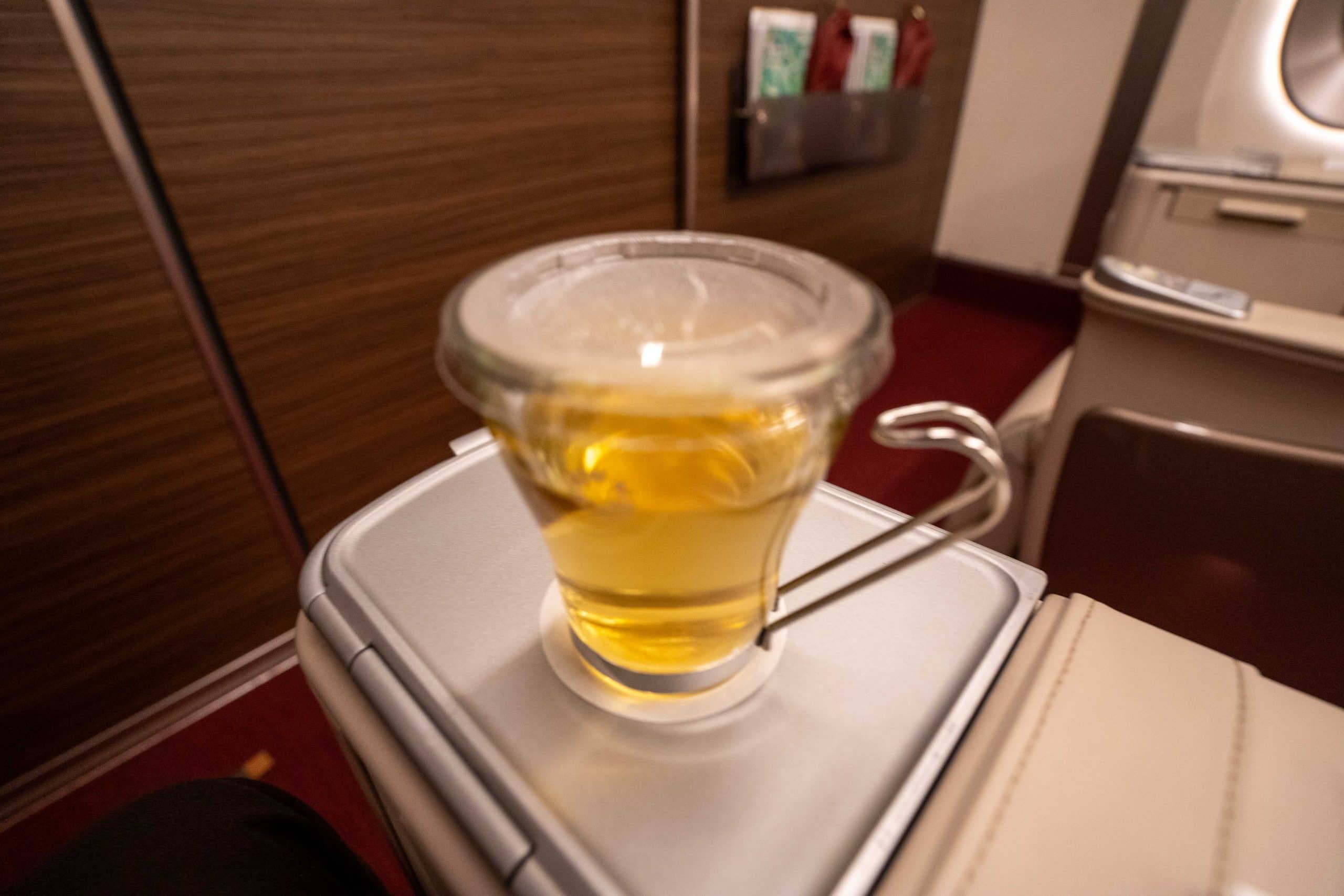 When I inquired about a potential second serving, the attendant gently refused, saying that each passenger was only entitled to one portion of the meal, but the staff did offer an extra slice of pound cake and a warm cup of green tea.