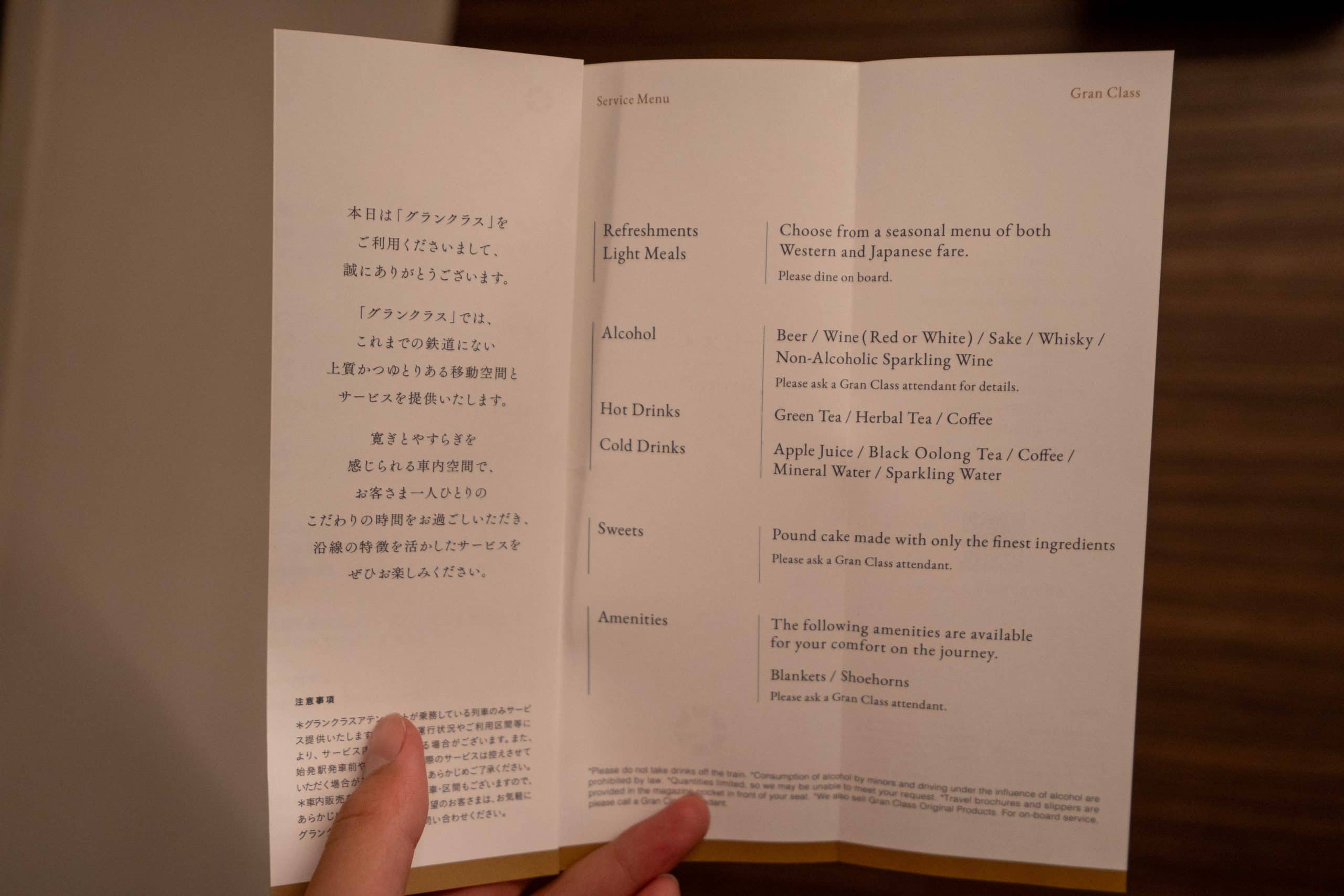 JR Shinkansen Gran Class – Amenities