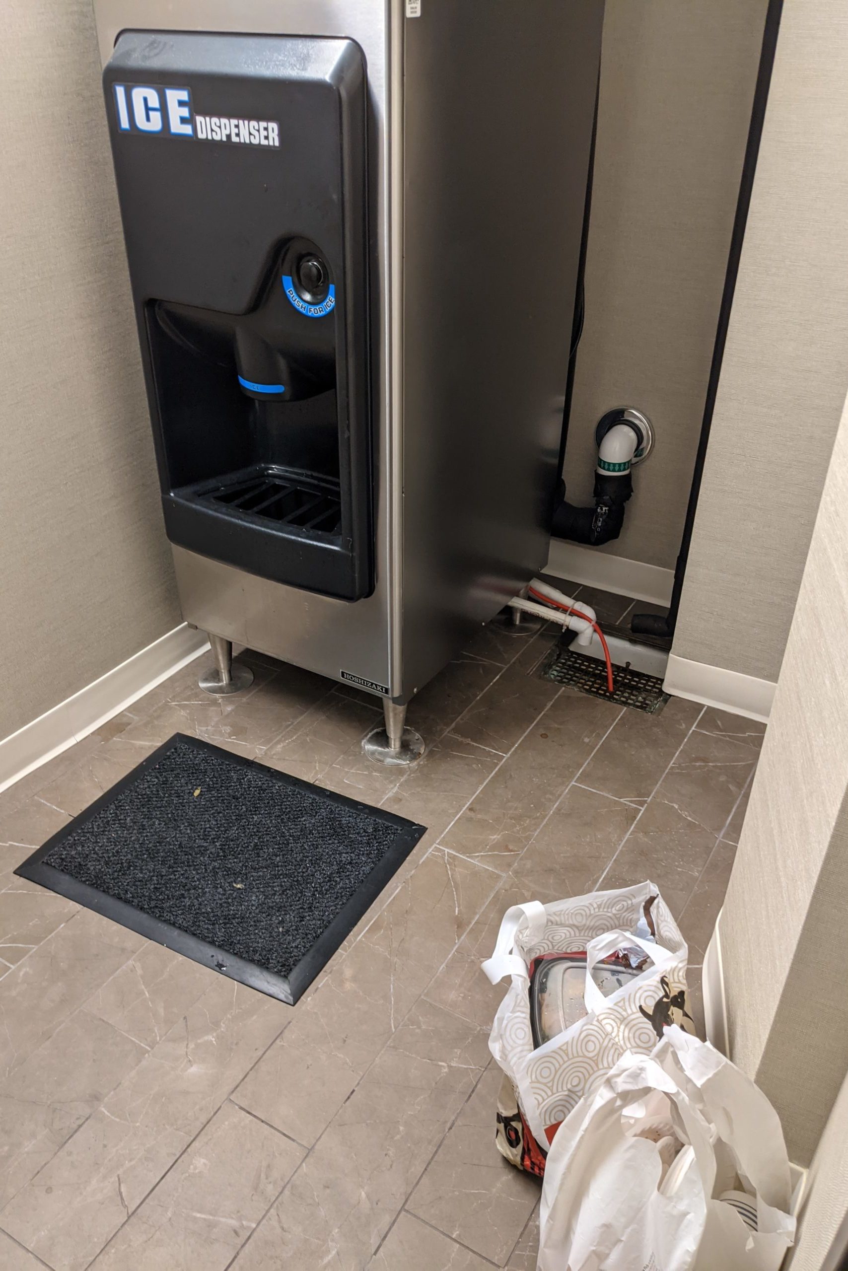 I assume that many guests were having issues with their rooms being cleaned, because when I went into the ice machine room, I noticed garbage left beside the machine. There was a mix of garbage and food waste in the bag, and to add to the fun, the bag had a smell about it.