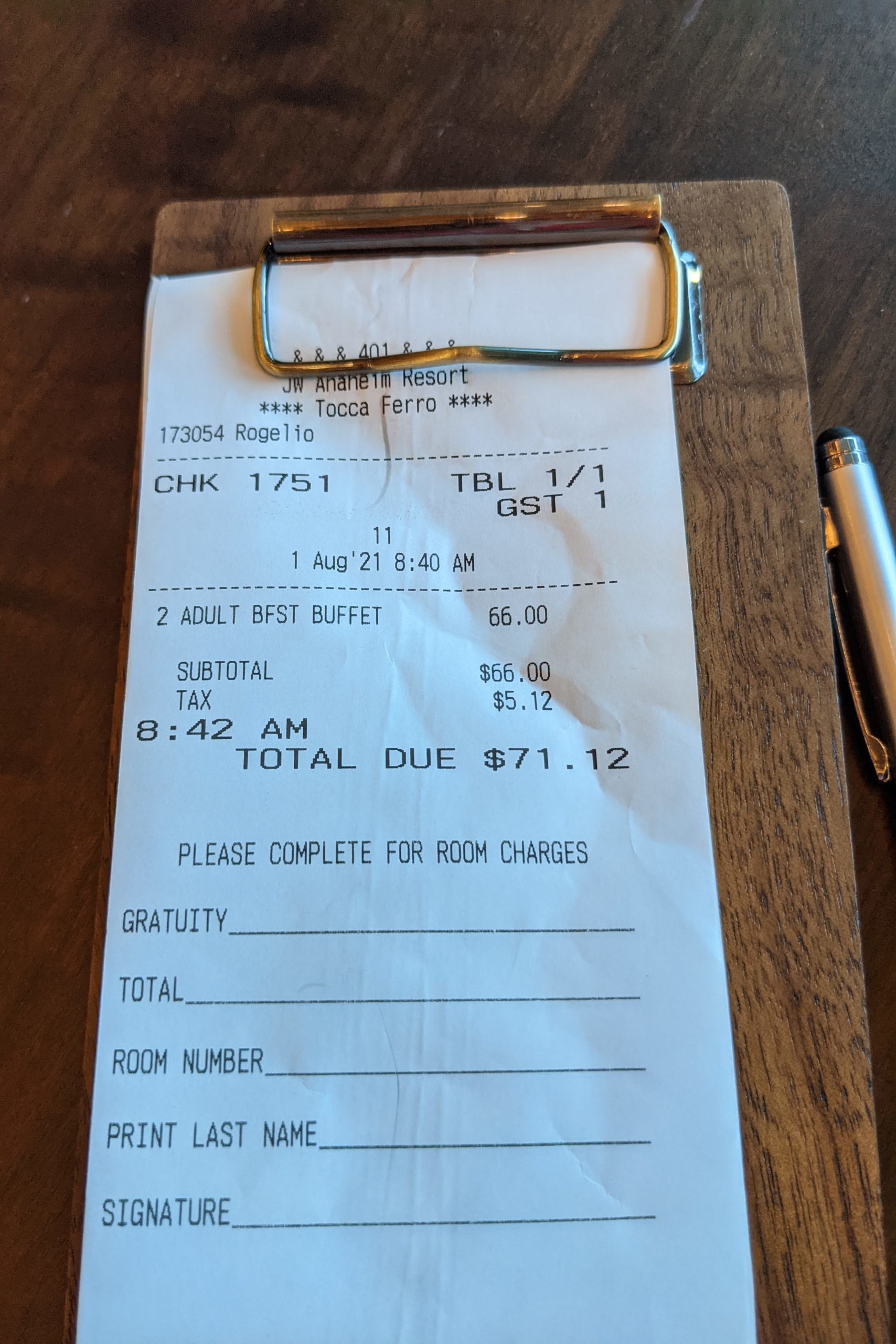 Unfortunately, the JW Marriott Anaheim did not have our room ready, so we were asked to leave our phone number so they could call us when it was.
