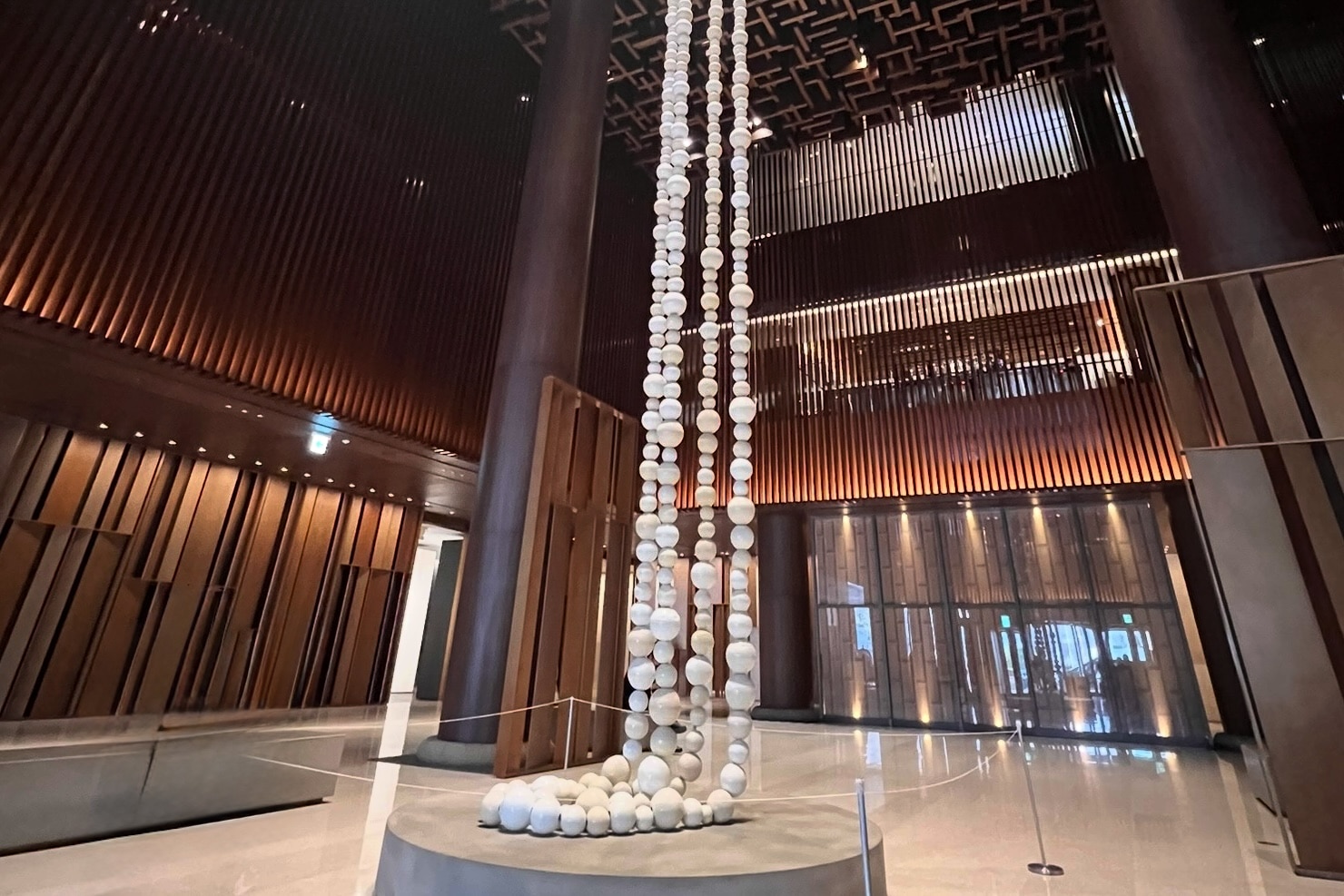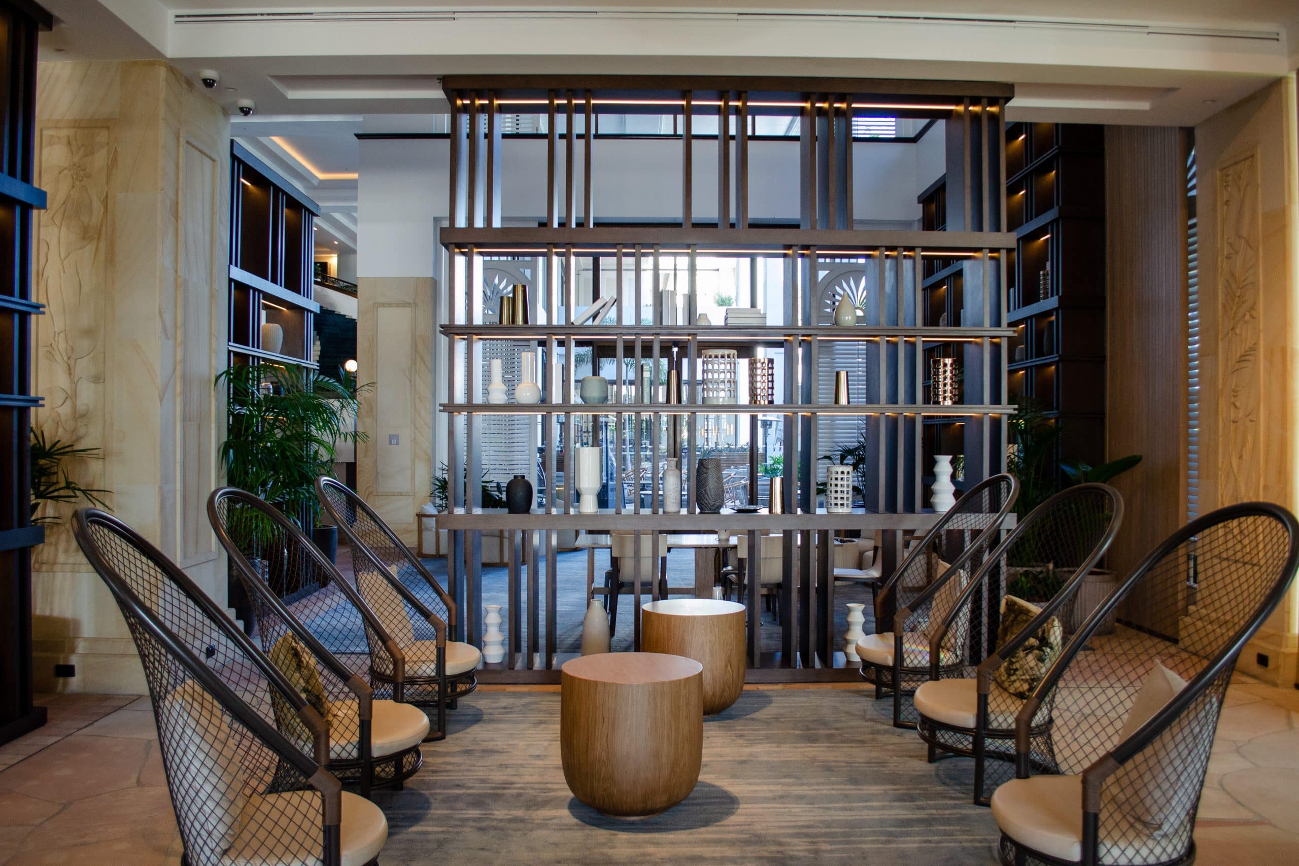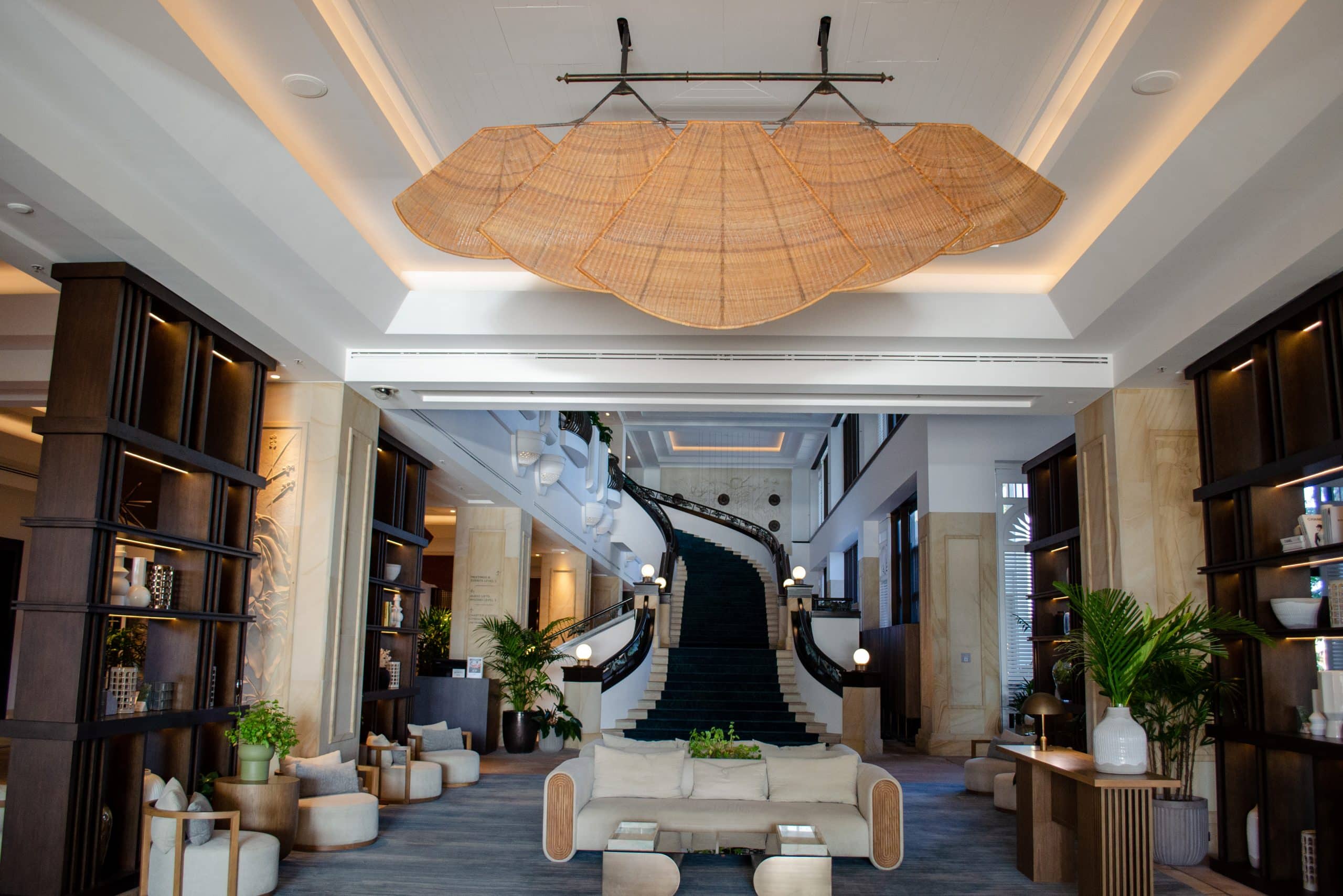 The automatic doors open up to a beautiful lobby lounge, with a grand staircase that mimics a cascading waterfall as the main focal point.