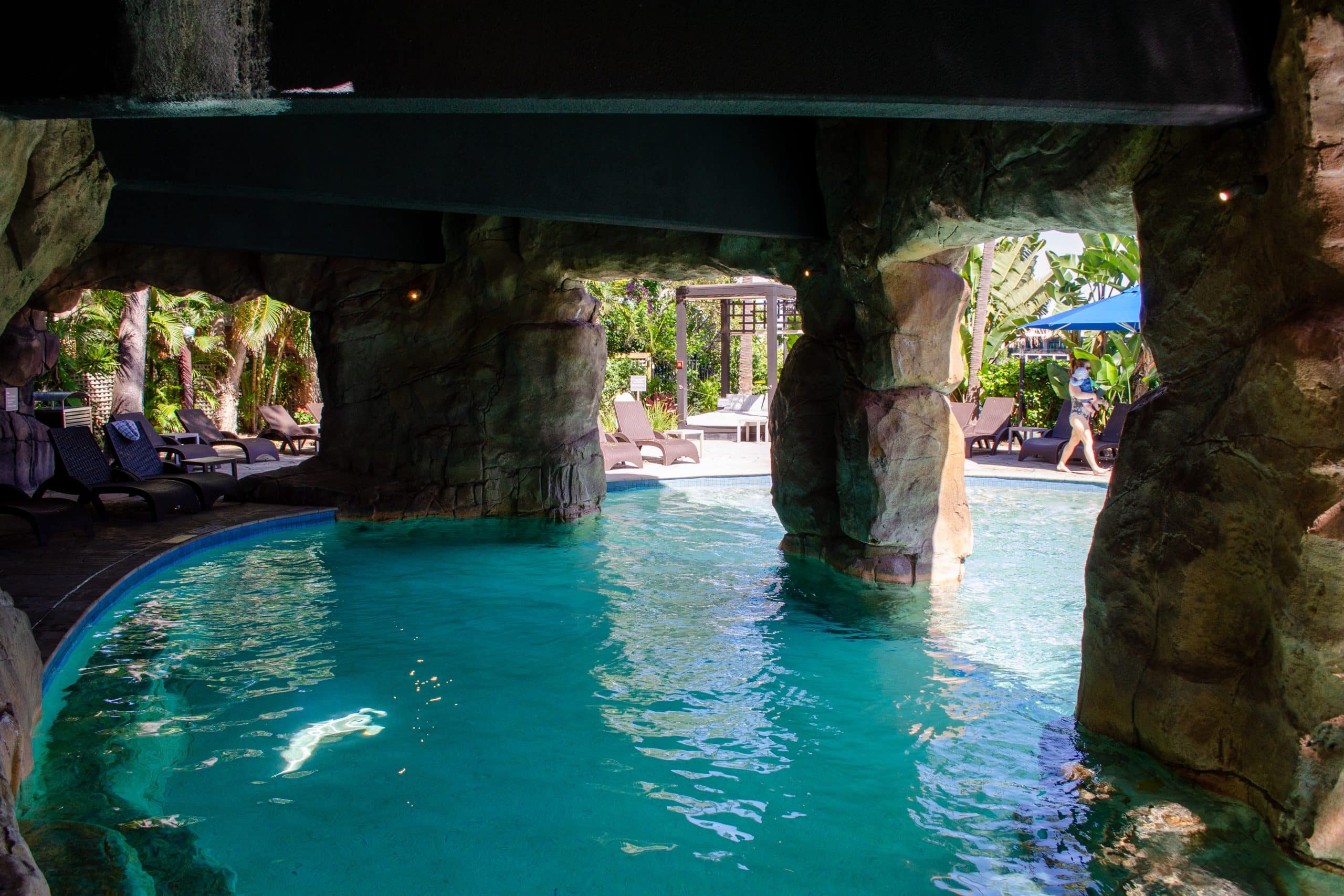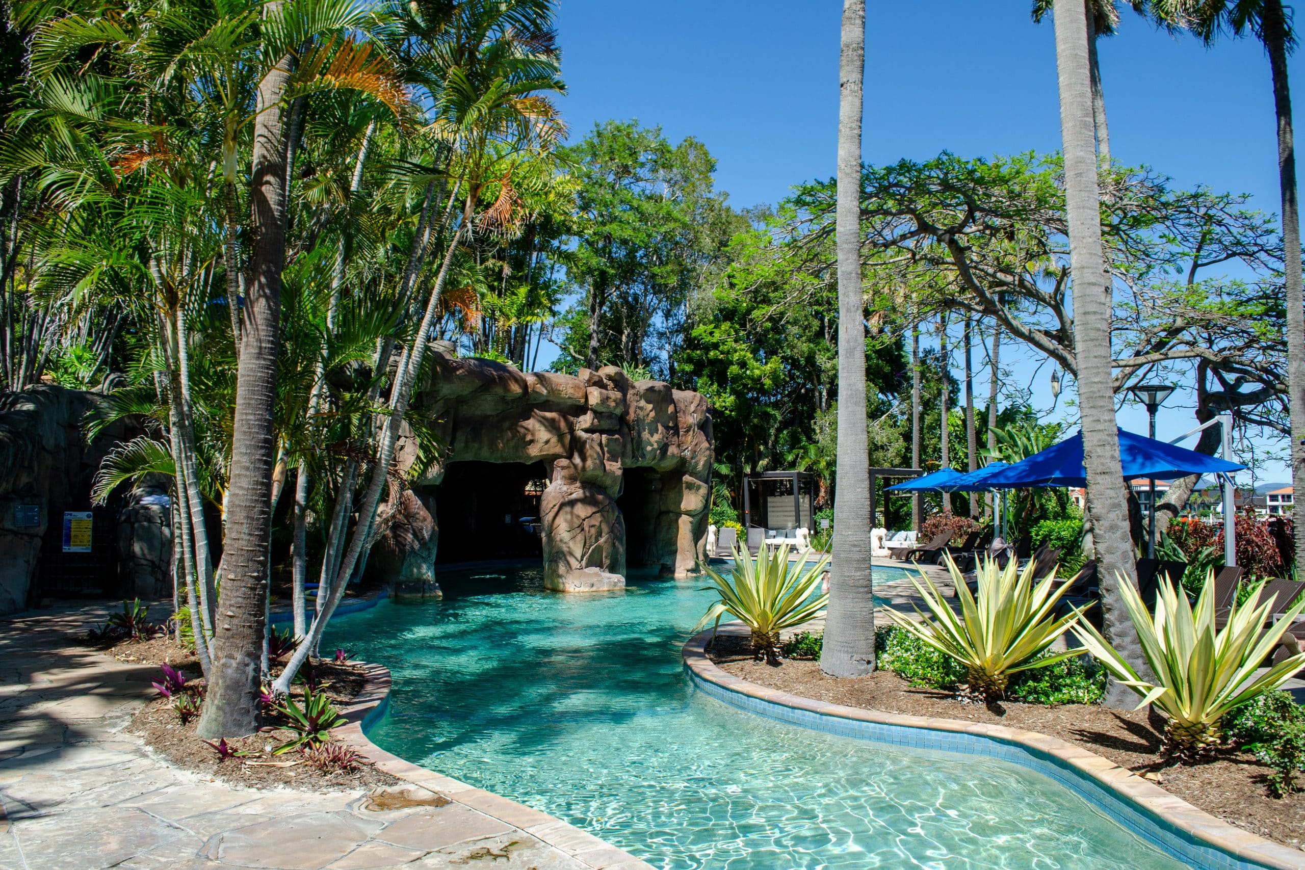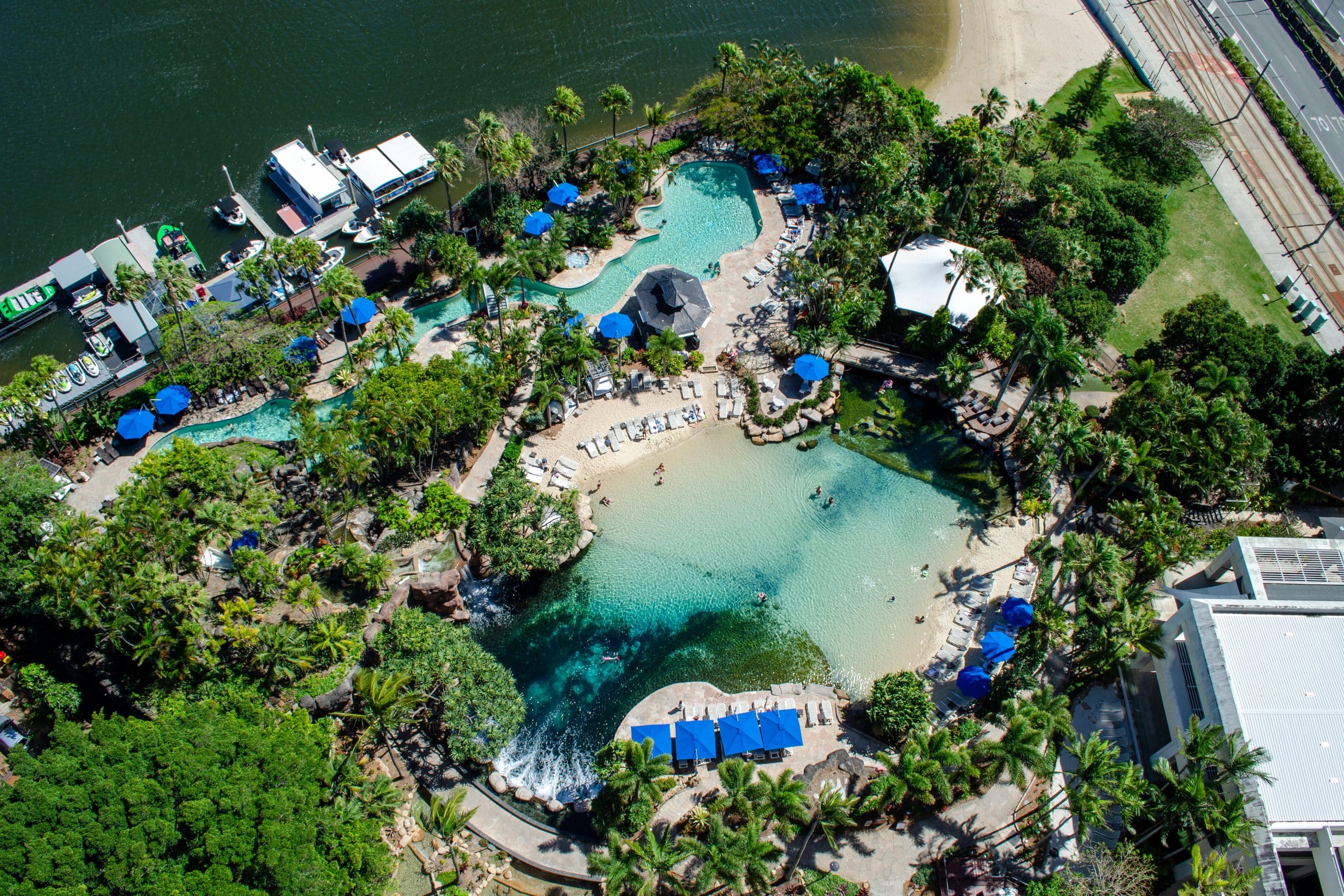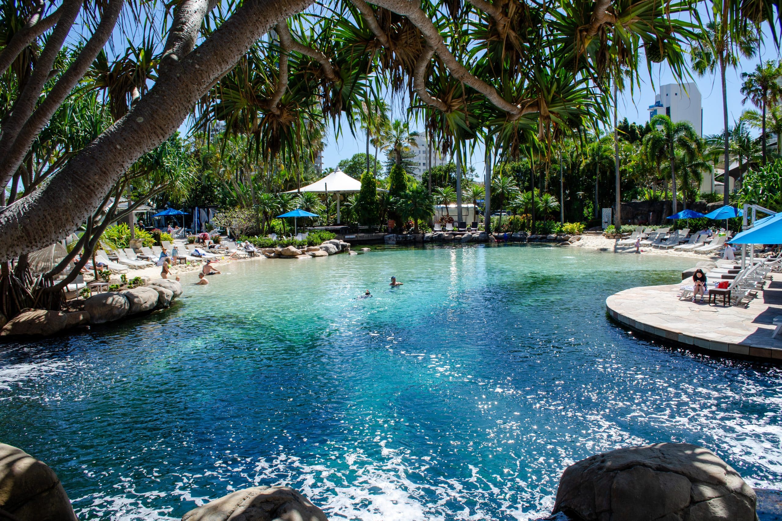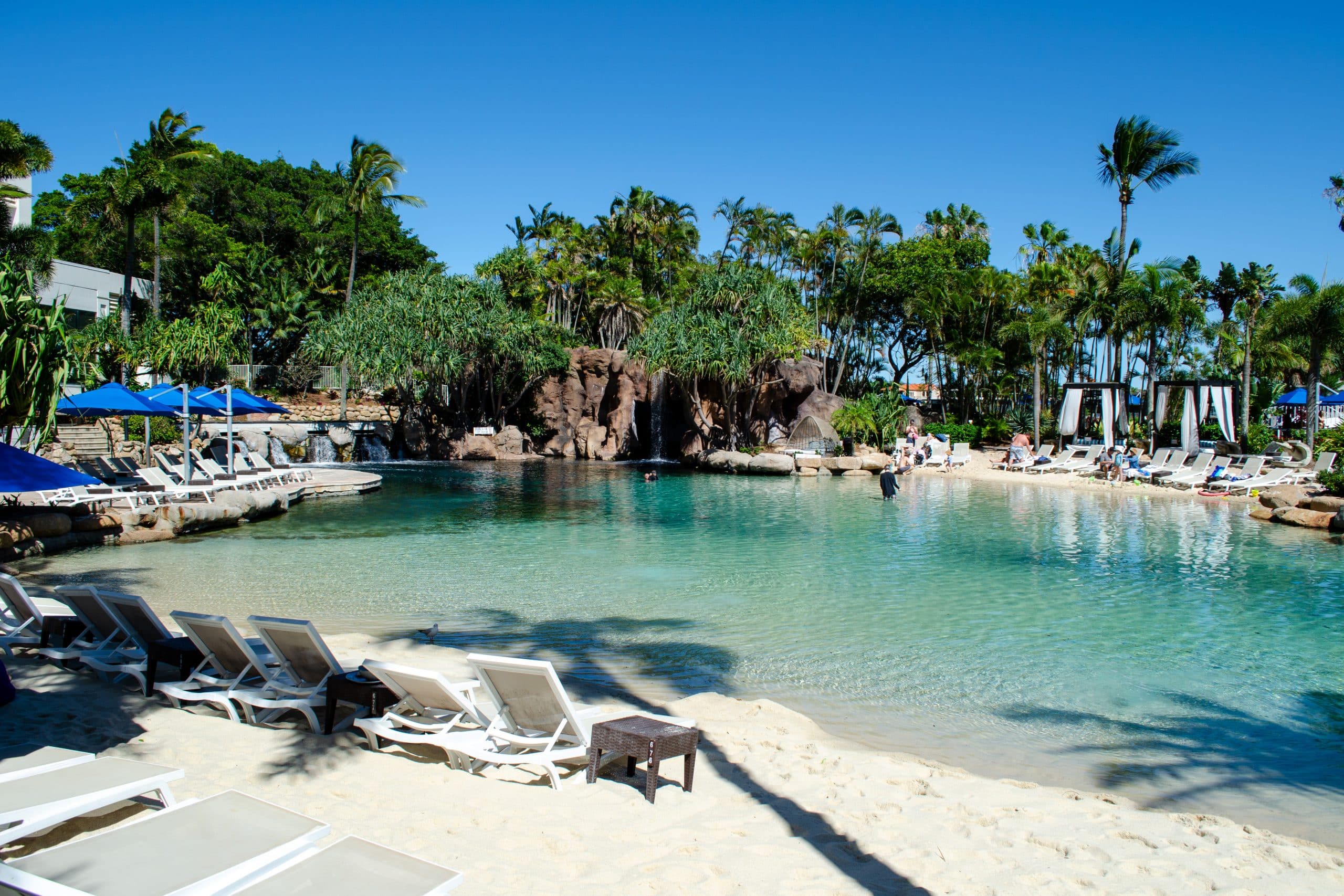One of the JW Marriott Gold Coast’s main attractions is its sprawling outdoor pool area, featuring a saltwater lagoon with tropical fish, hot tubs, cascading waterfalls, rock grottos, plenty of lounge chairs, a waterslide, and a separate swimming pool.