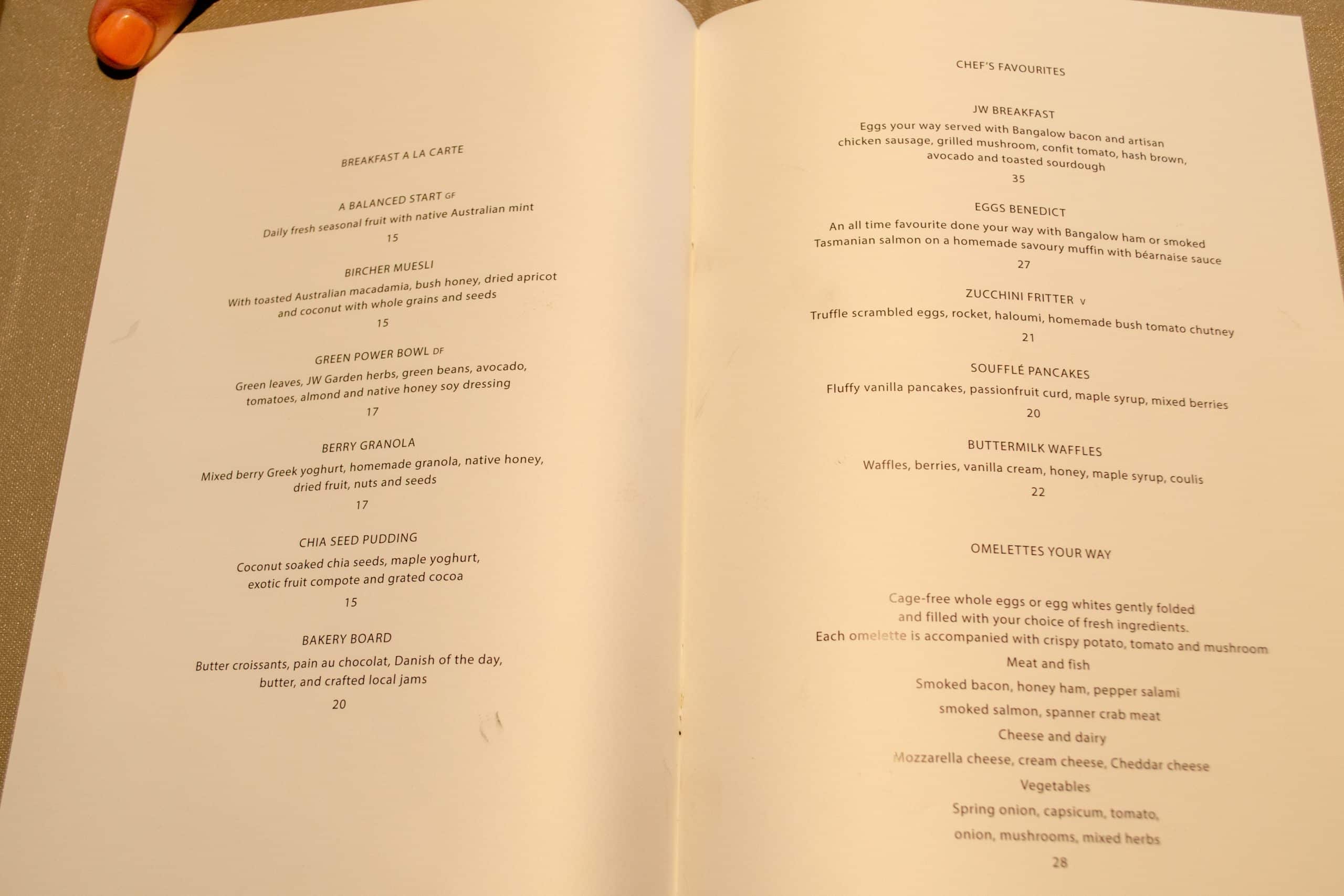 We enjoyed complimentary breakfast through my Marriott Platinum benefits, and we had the choice of the buffet or an à la carte menu. Naturally, we opted for the buffet, but the menu items also looked to be quite delicious.