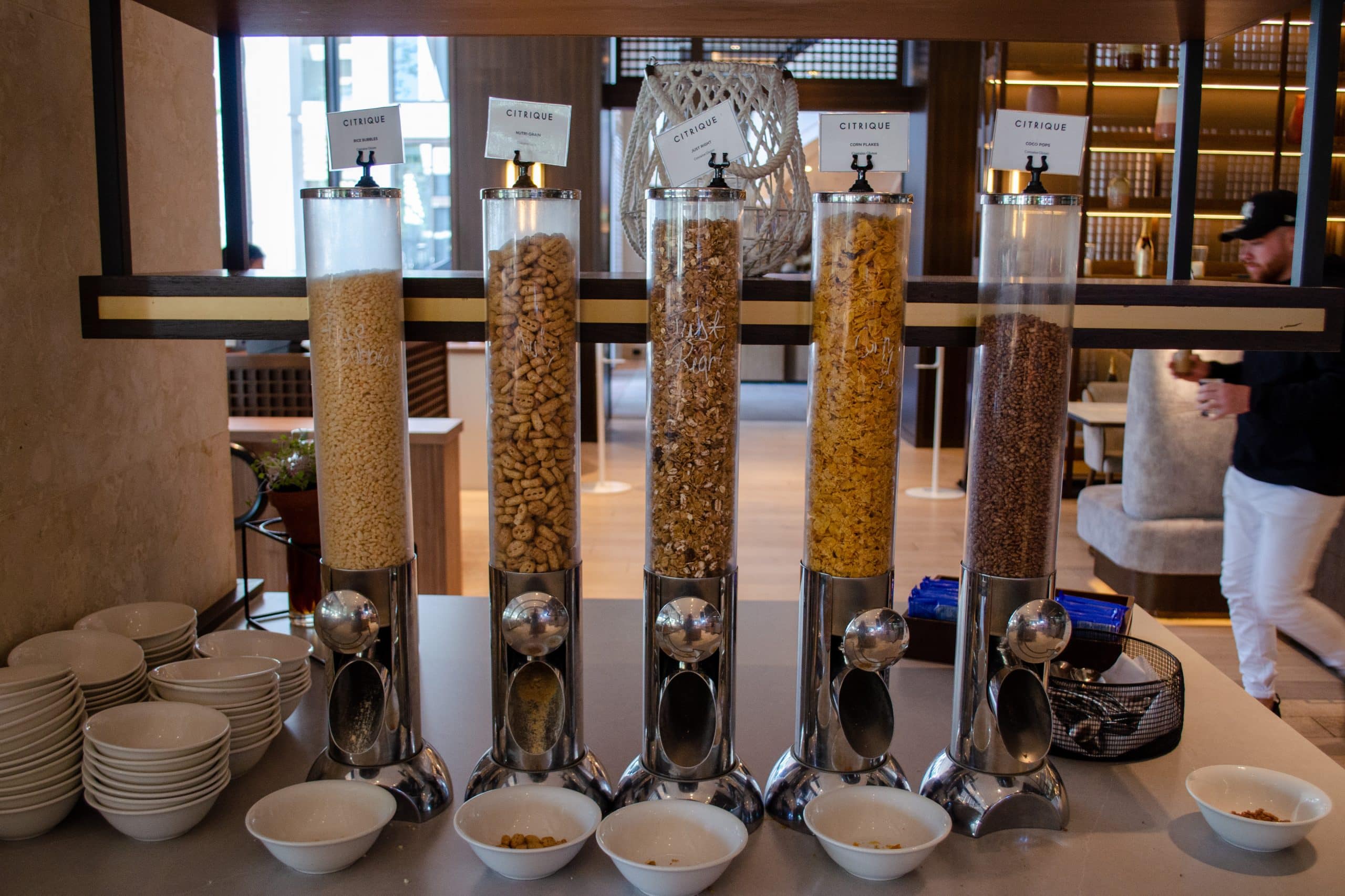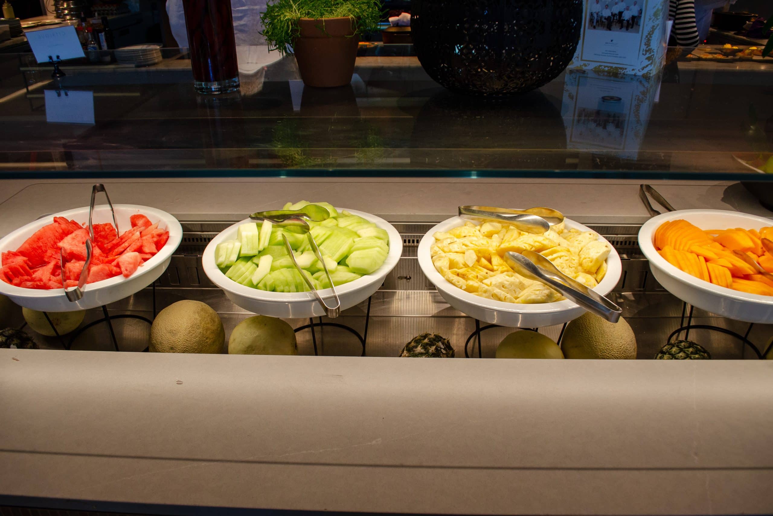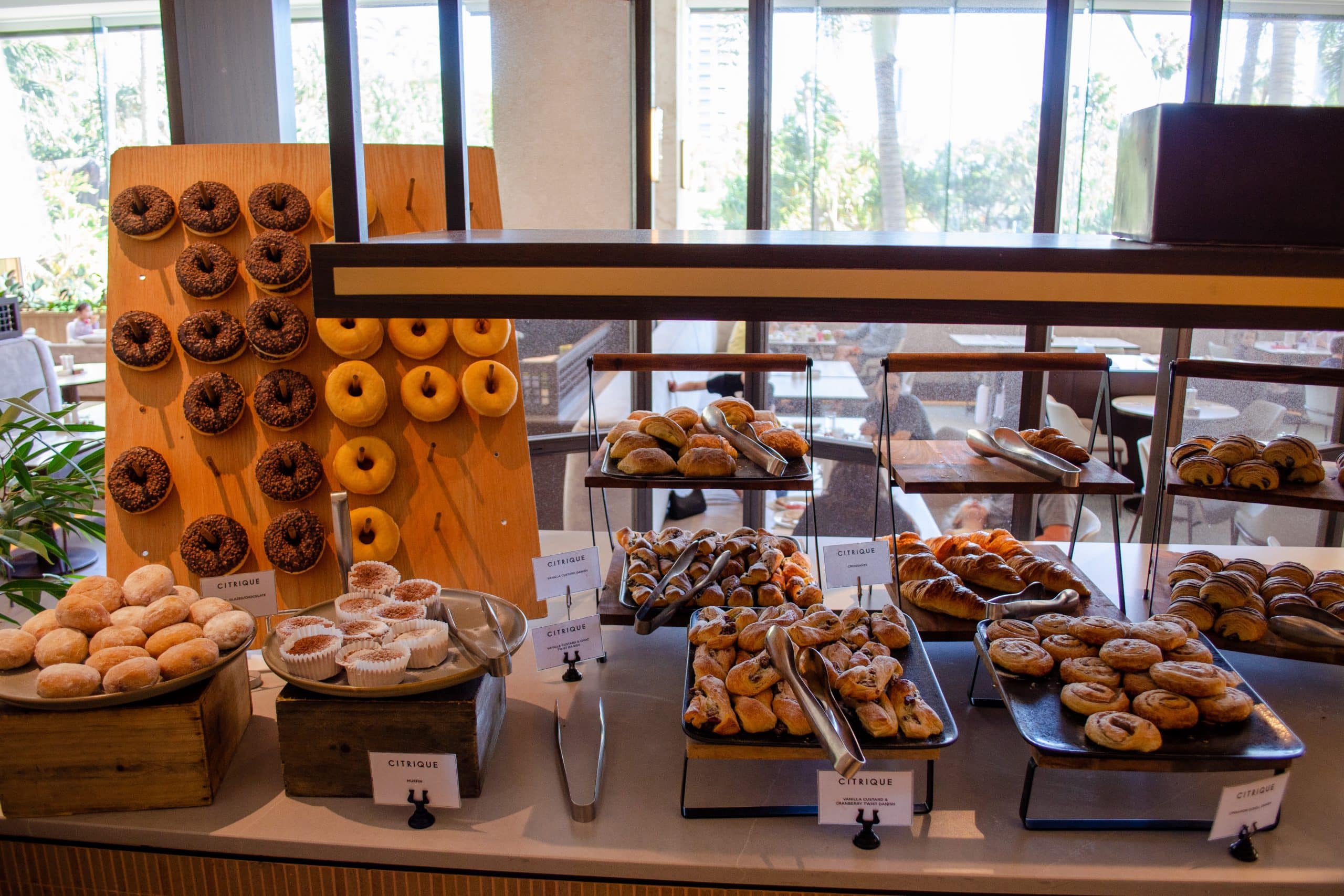 The cold buffet was equally as impressive, with options that include passionfruit or coconut yogurt, a donut rack, fresh fruit, cereals, and a salad bar. There’s also an entire gluten-free section of goods available.
