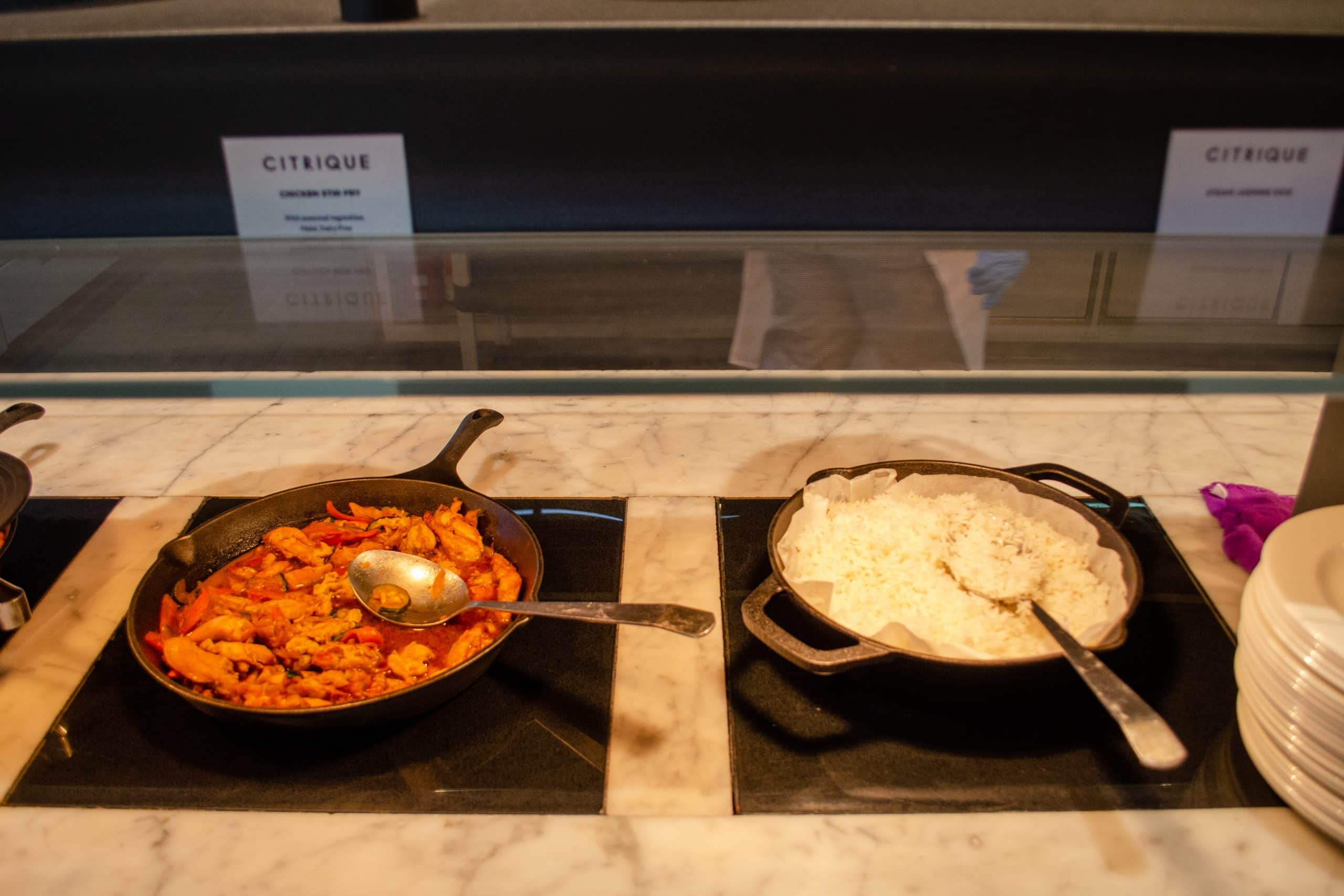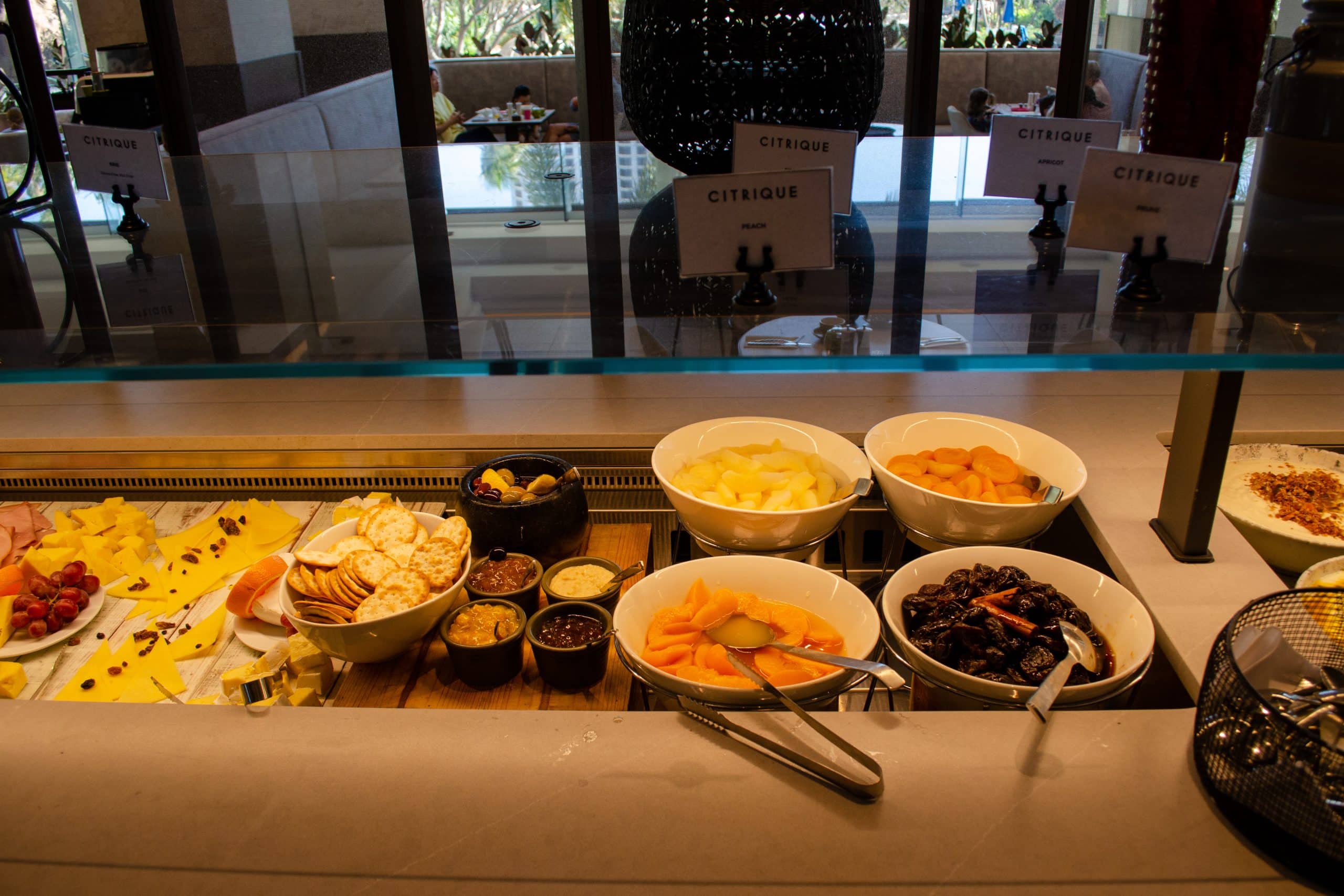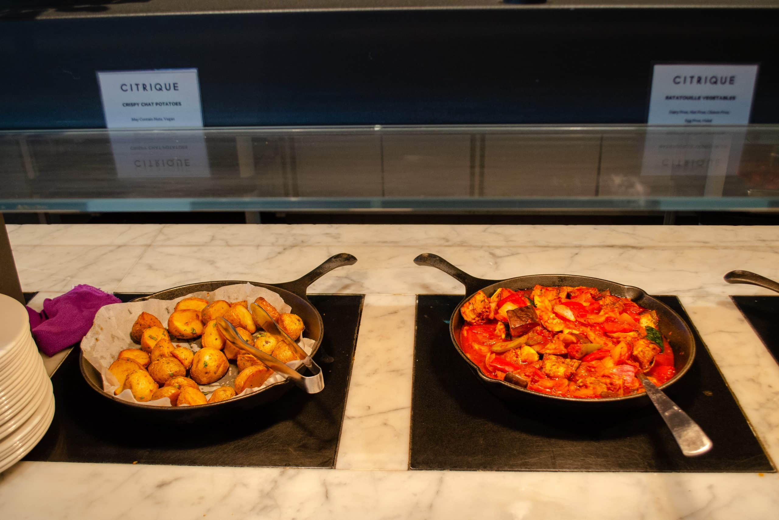 The cold buffet was equally as impressive, with options that include passionfruit or coconut yogurt, a donut rack, fresh fruit, cereals, and a salad bar. There’s also an entire gluten-free section of goods available.