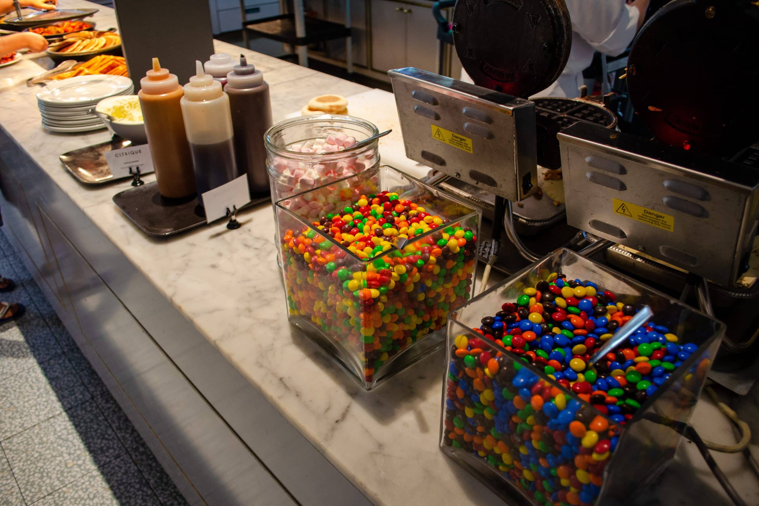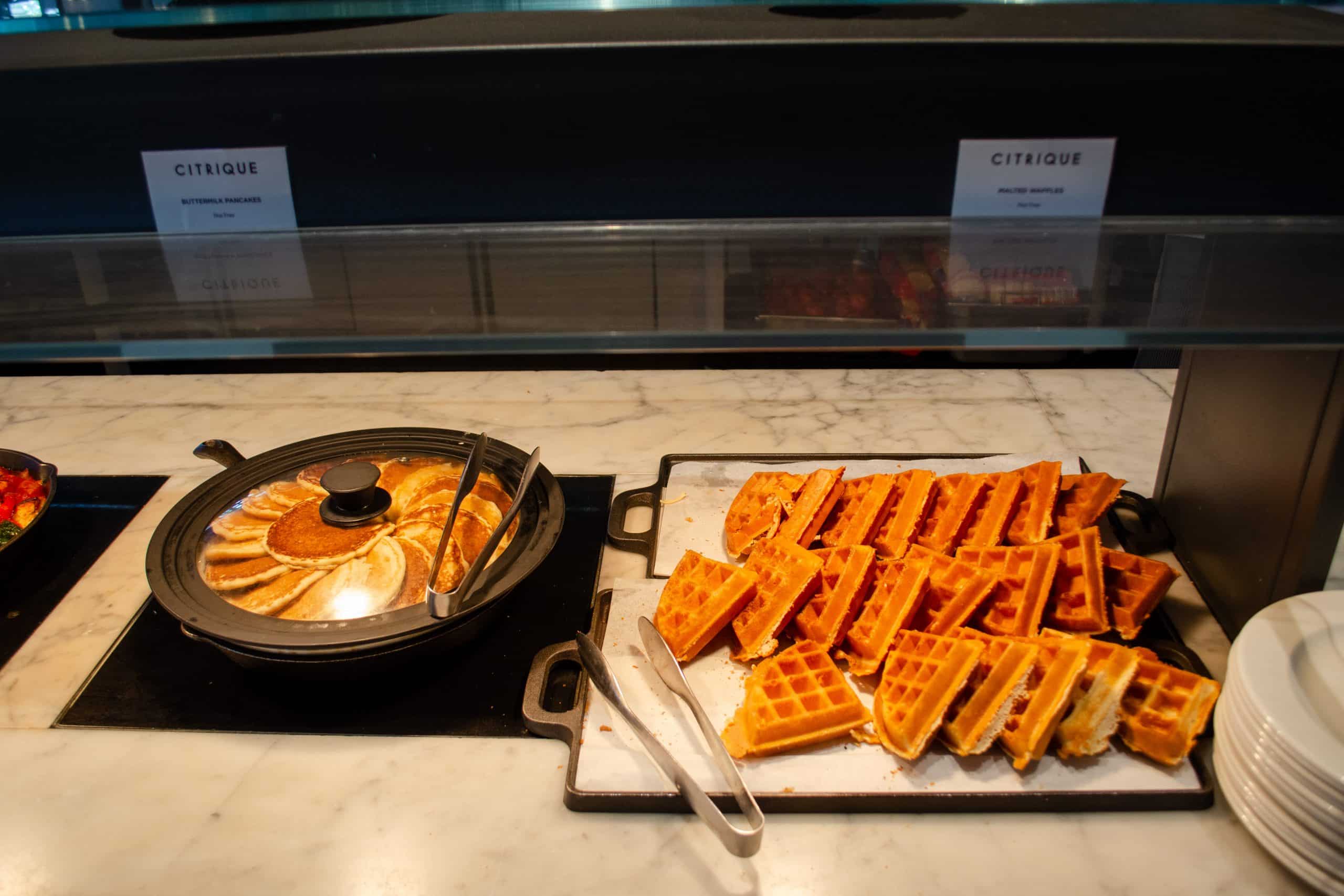 If you’re travelling with kids or if you’re young at heart, be sure to enjoy the waffle and pancake station, with whipped cream and other sugary toppings nearby.