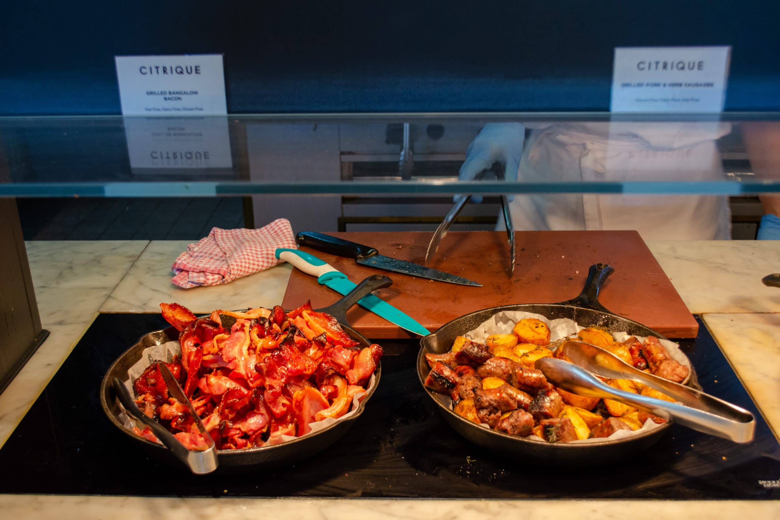 The buffet area features a nice variety of hot and cold options, which were stocked up frequently by the many staff. The hot station had western classics, such as streaky bacon, sausages, hash browns, and several styles of eggs, as well as some Asian-inspired food, such as steamed buns, chicken curry, and noodles.