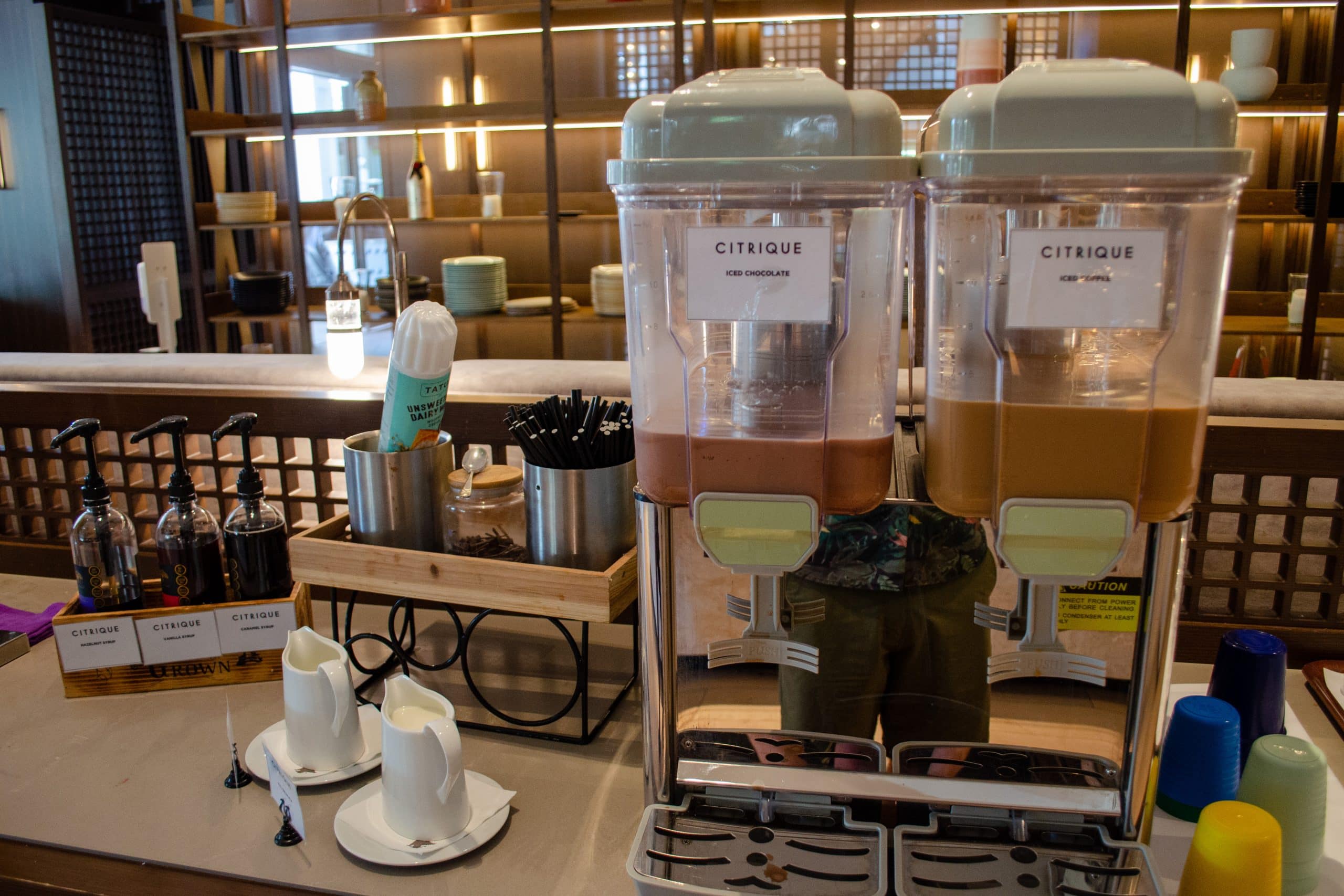 Close to the entrance is a drinks station, which had a number of juices, as well as iced chocolate and coffee drinks.