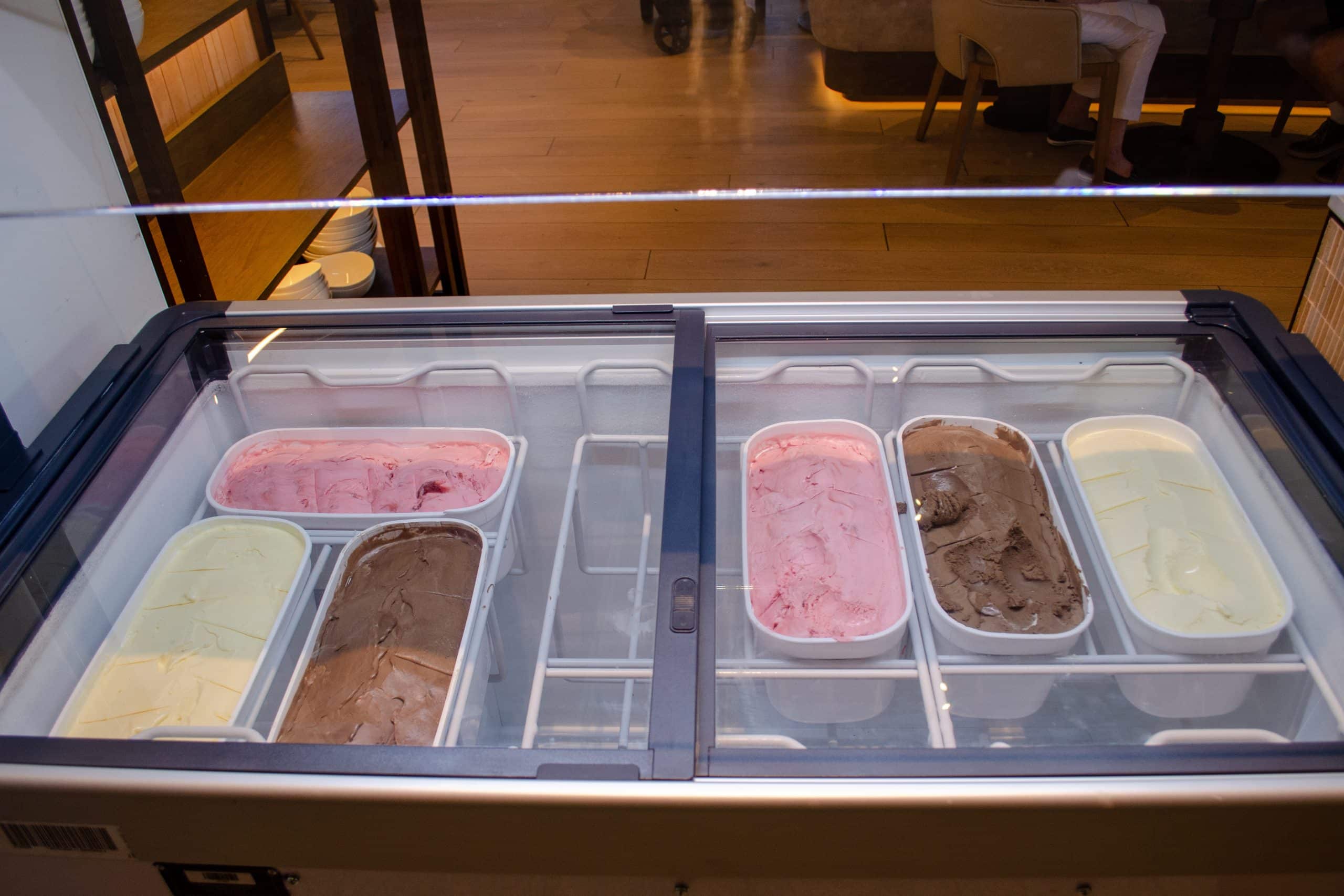 To satisfy your sweet tooth, be sure to check out the ice cream cooler at the end of your breakfast.