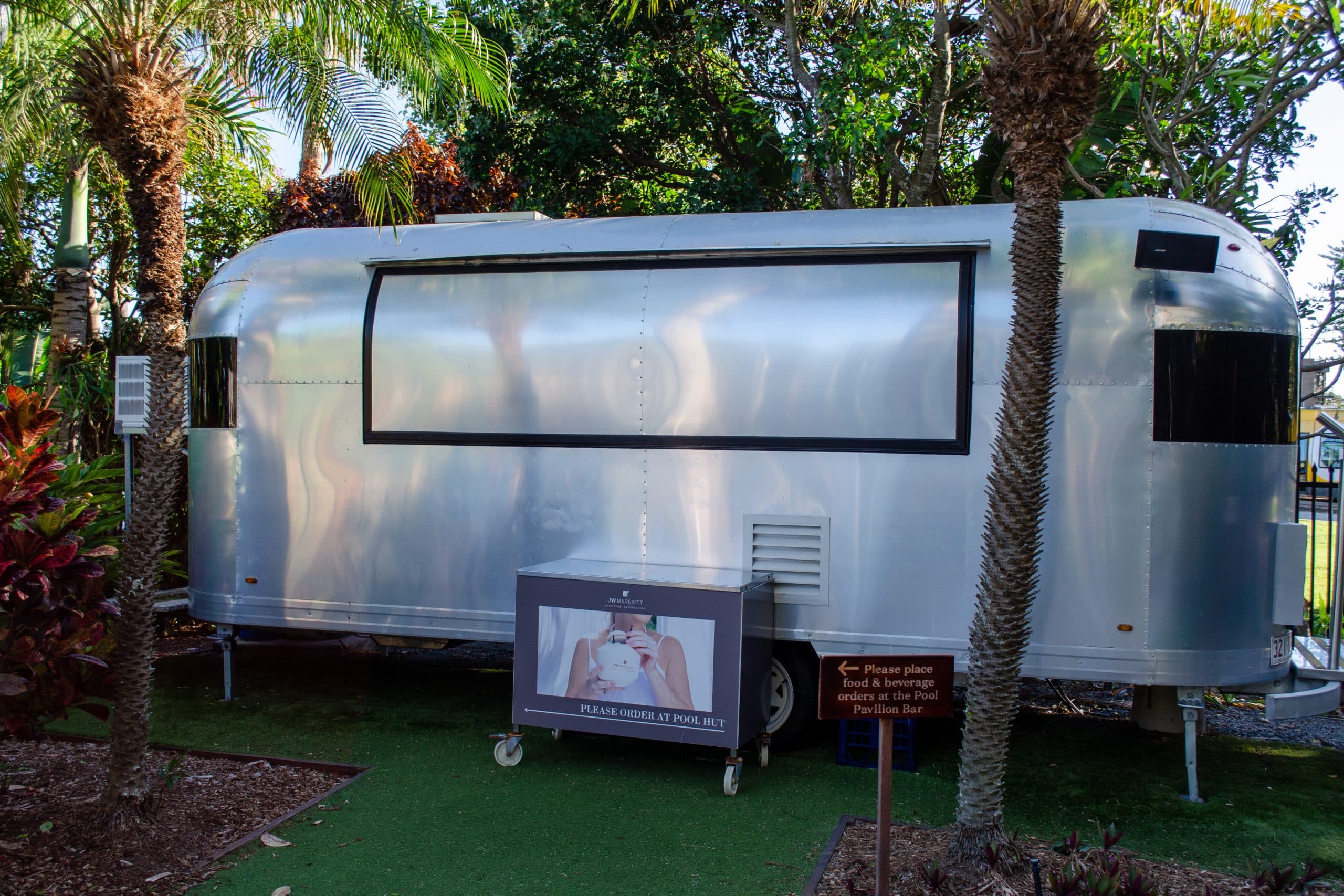 Next to the pool, you’ll find a food truck housed in an Airstream trailer, as well as Pavilion Bar serving cold drinks. The food truck wasn’t operating during our stay, but we enjoyed a drink from Pavilion Bar during an afternoon spent lounging by the pool.