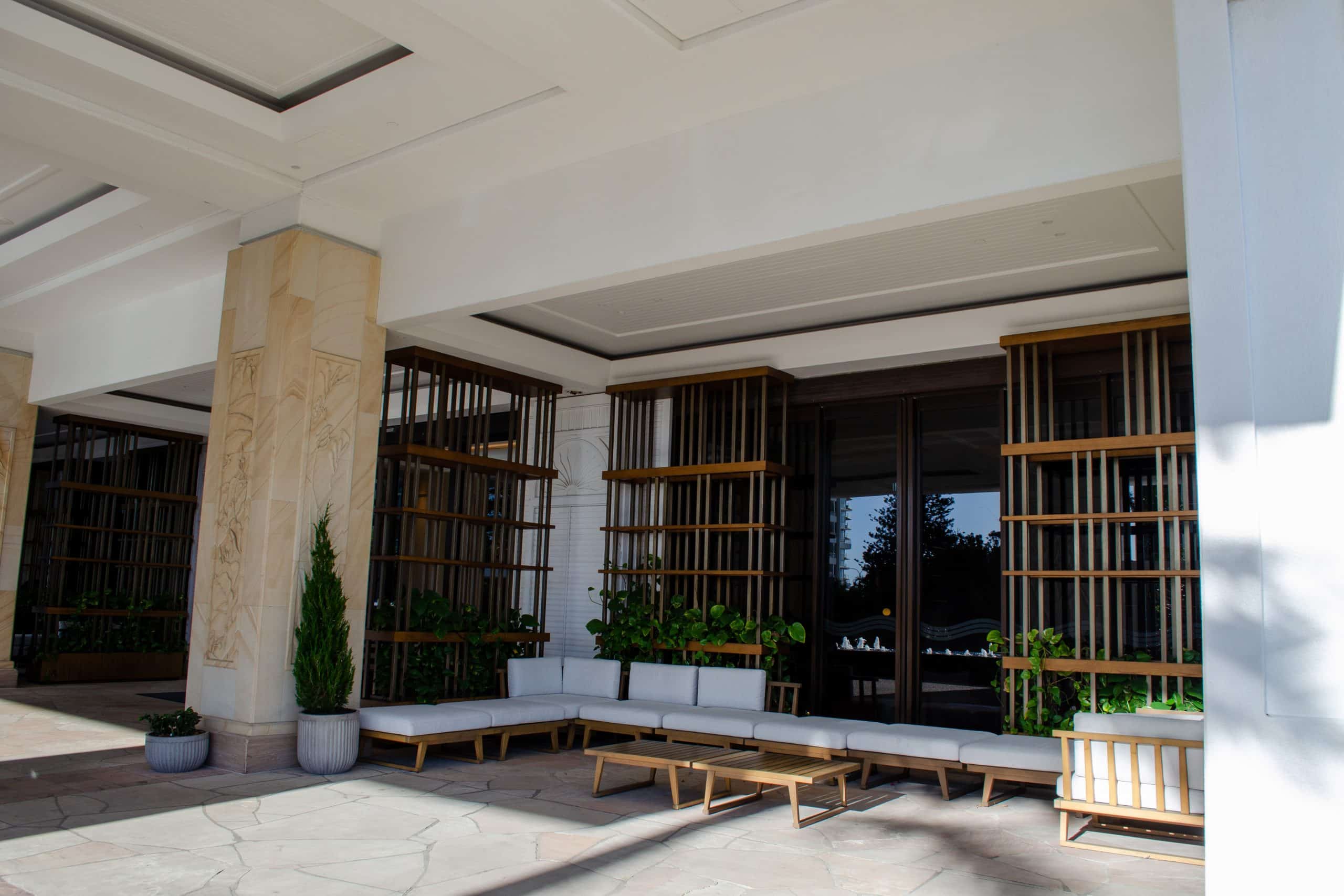 Outside of the main entrance, there are some bench seats available to guests who are waiting for the valet service or a ride to somewhere else.