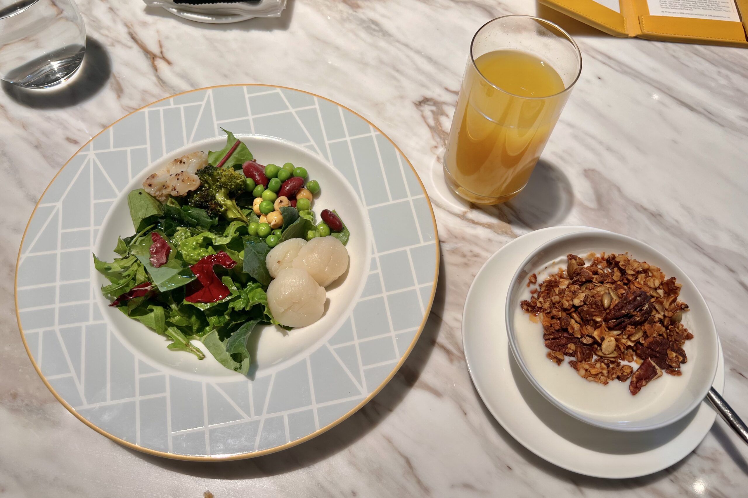 - Breakfast: We chose this as our welcome amenity, which included ordering an item off the á la carte menu or ordering a breakfast set which included a bread basket, salad, yogurt dish, a choice of a main Korean or Western dish, coffee or tea, and dessert.