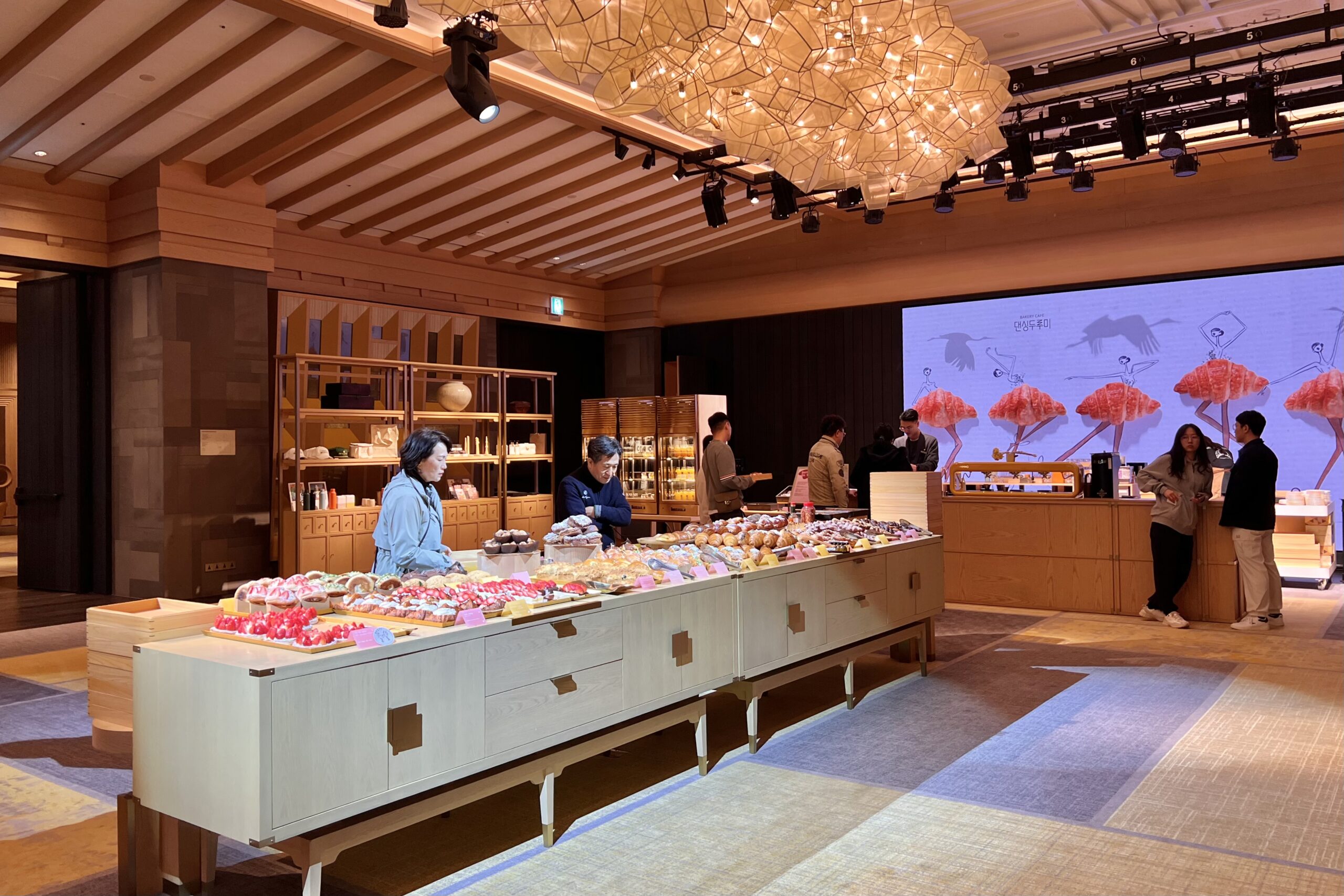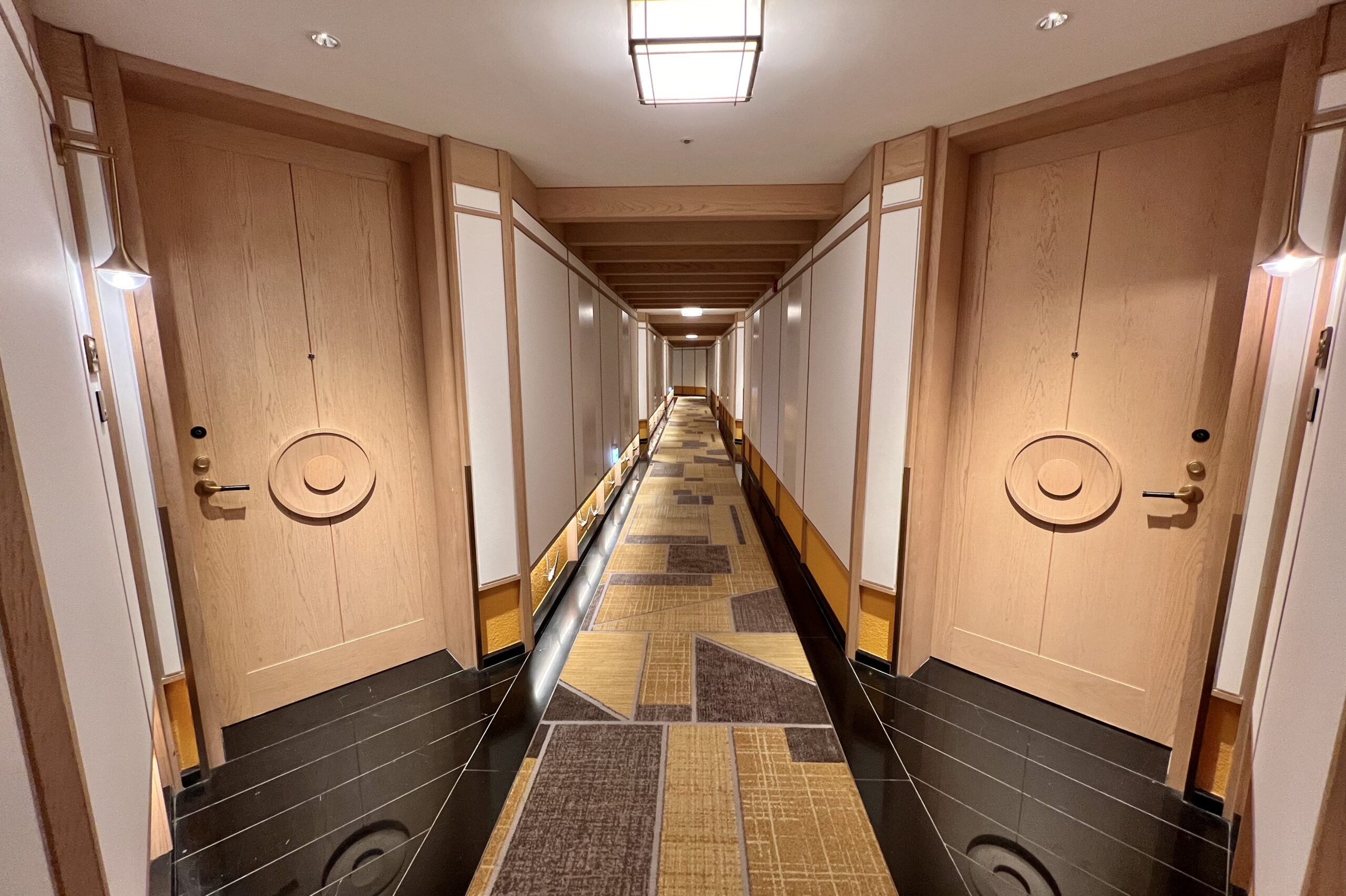 As we made our way to our suite, the ambiance immediately evoked the feeling of a traditional Korean hanok, with hallways featuring white patch-style walls paired with light wood paneling. Soft golden-toned accents–paying tribute to Jeju’s iconic canola blossoms–brought a gentle warmth to the space, while decorative replicas of Jeju’s flying fish adorning the walls reminded us of the island’s maritime heritage.