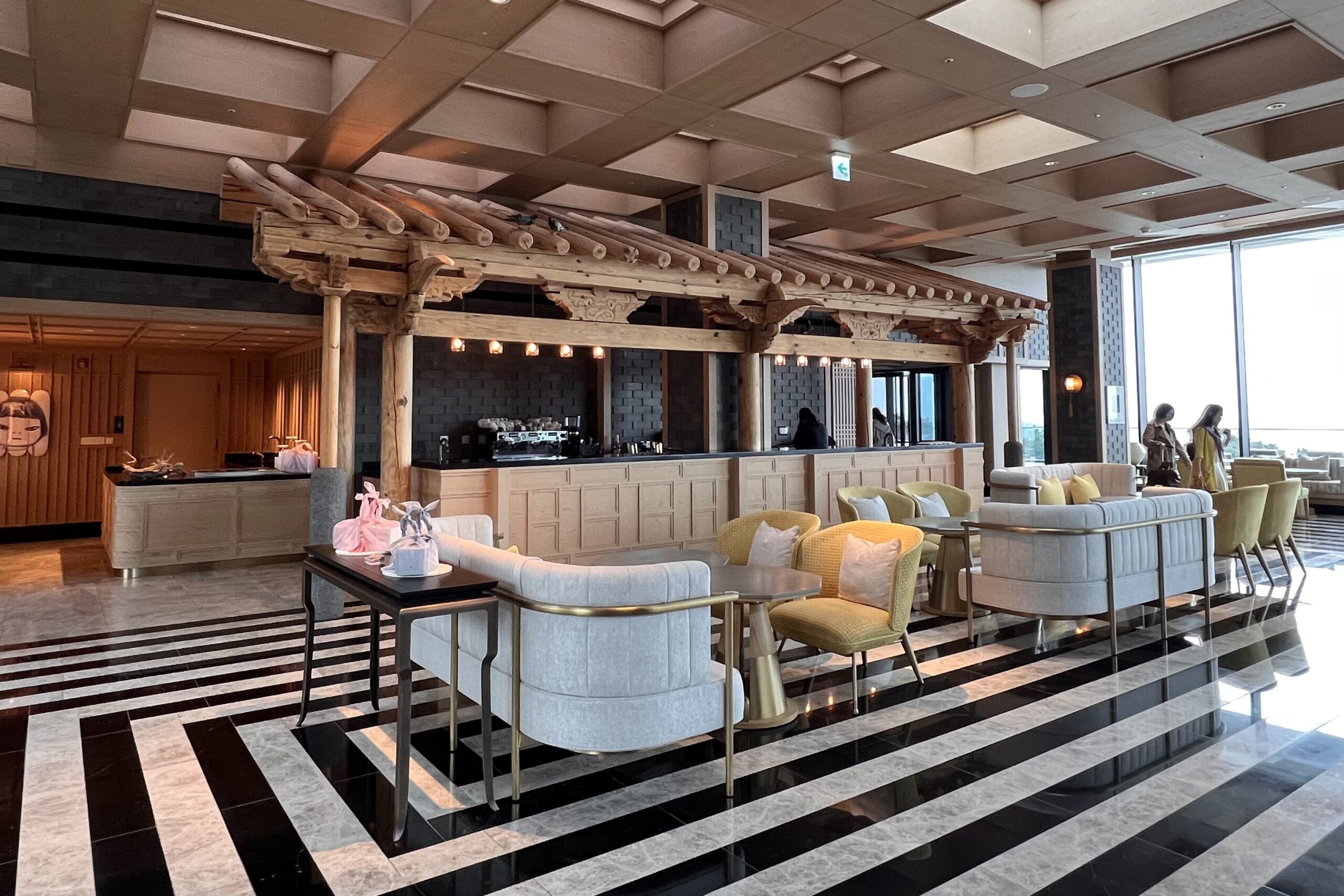Around the lobby are traditional seating arrangements where welcome seasonal snacks and Jeju tea were served while we completed our check-in.