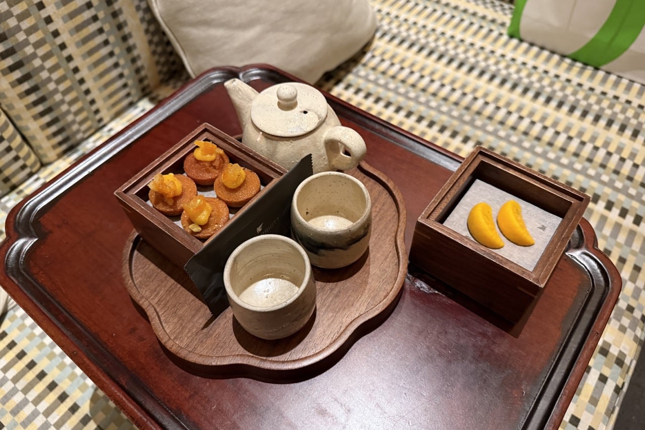 - Welcome amenity: We were offered a choice between 1,000 Marriott Bonvoy points or complimentary breakfast for up to two adults and two children as our welcome amenity. Additionally, we were offered a choice of beverage, including Korean liquor, red wine, or Jeju citrus juice, along with a snack selection from a curated menu featuring a confection collection, a savory platter, or a themed “art piece” assortment.