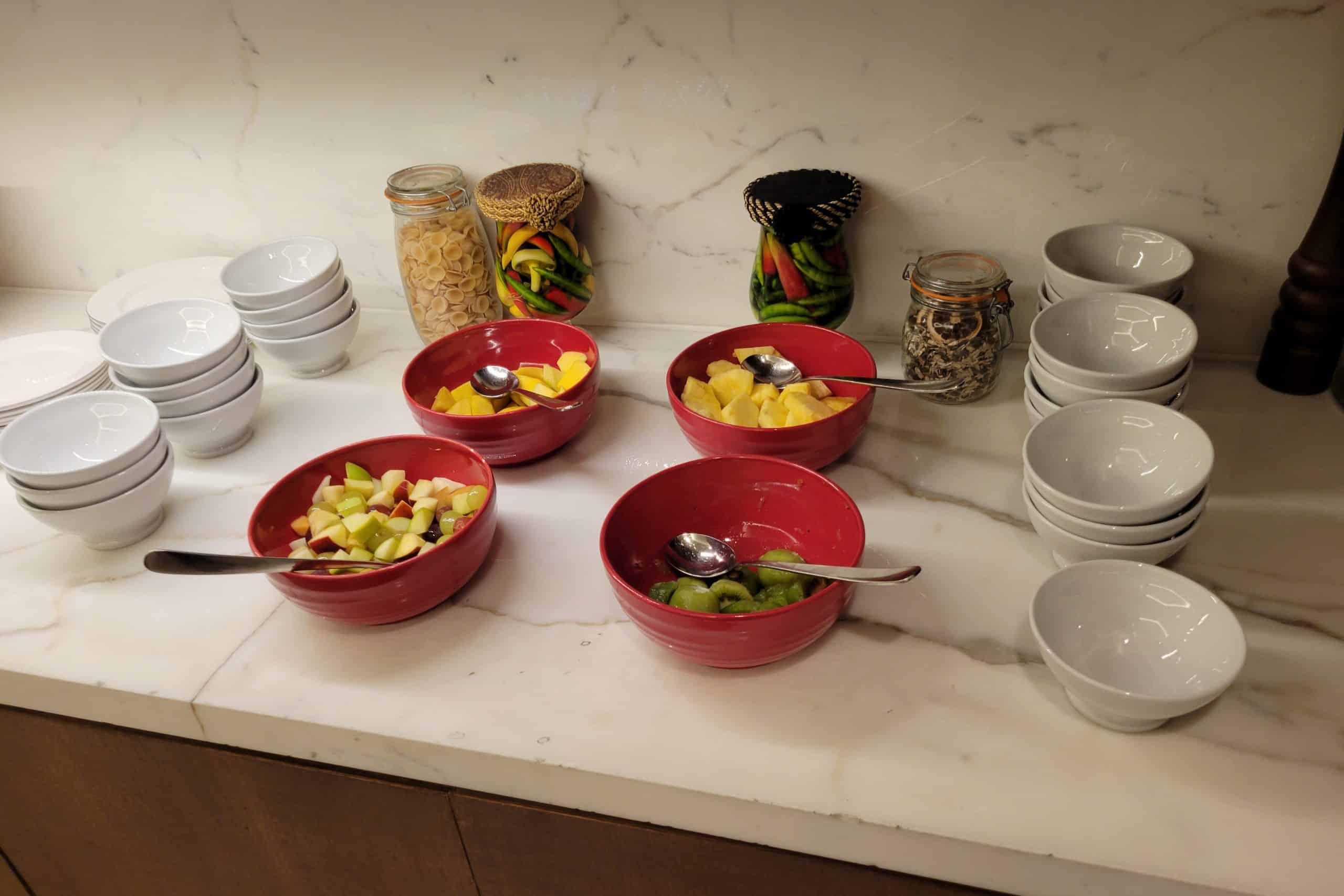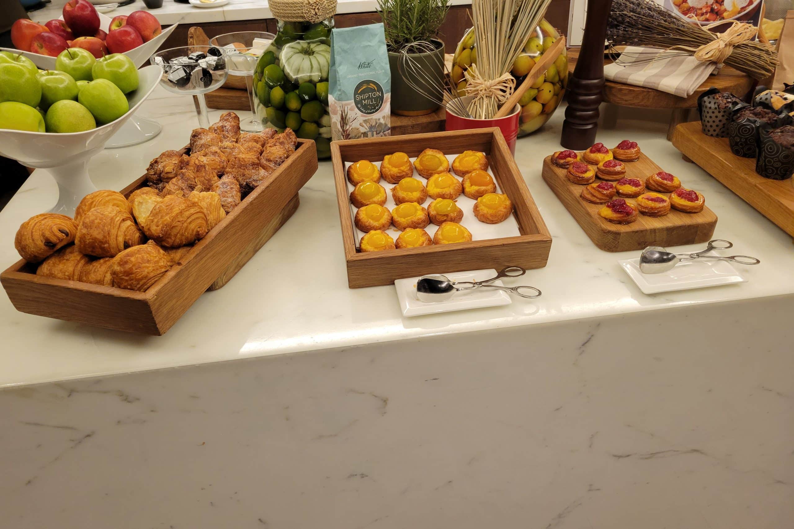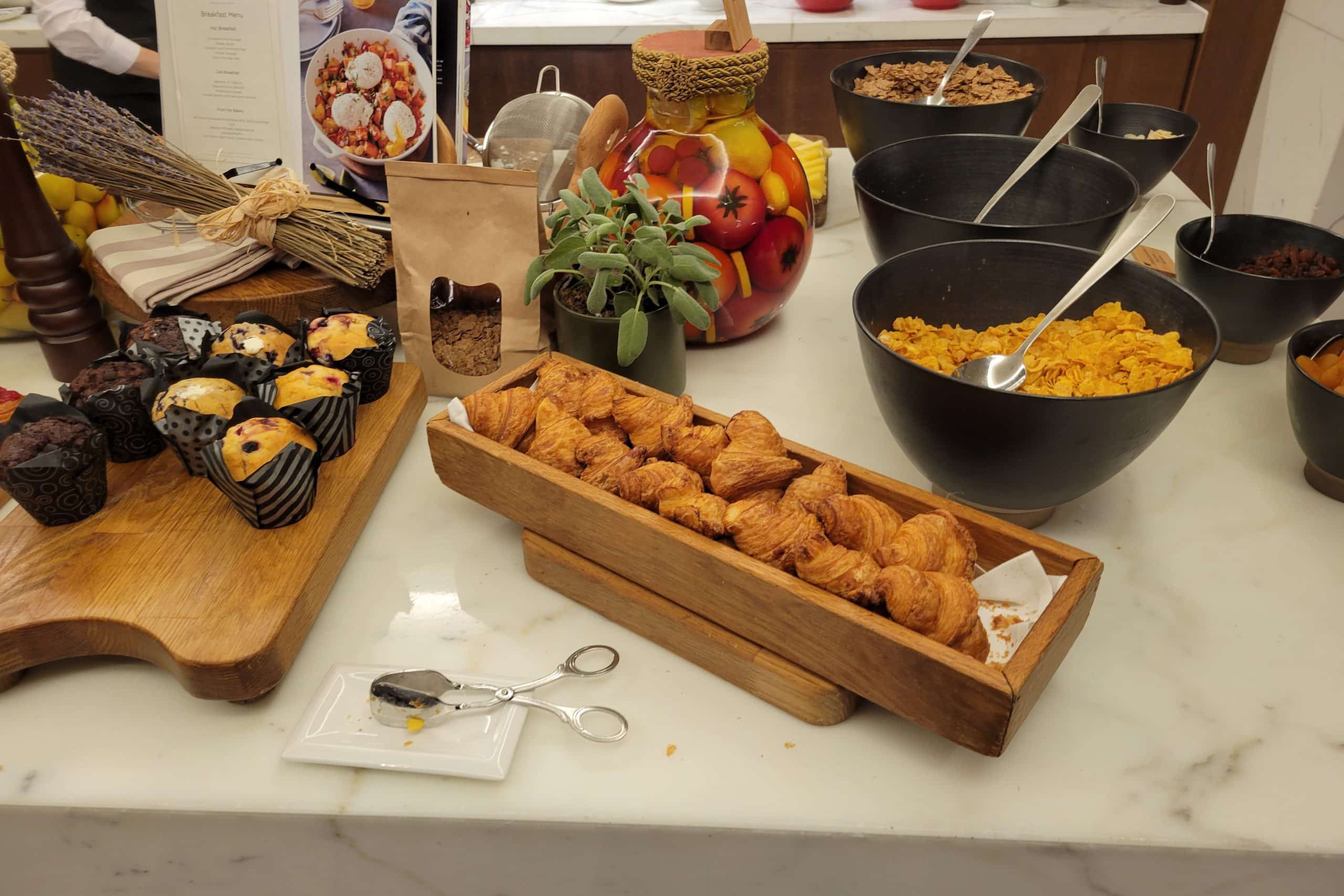 Of the two meals, the breakfast was much stronger. Not only was there a wider selection of fresh pastries, fruits, and hot foods, but there were also more staff present at breakfast to keep the lounge neat and tidy.