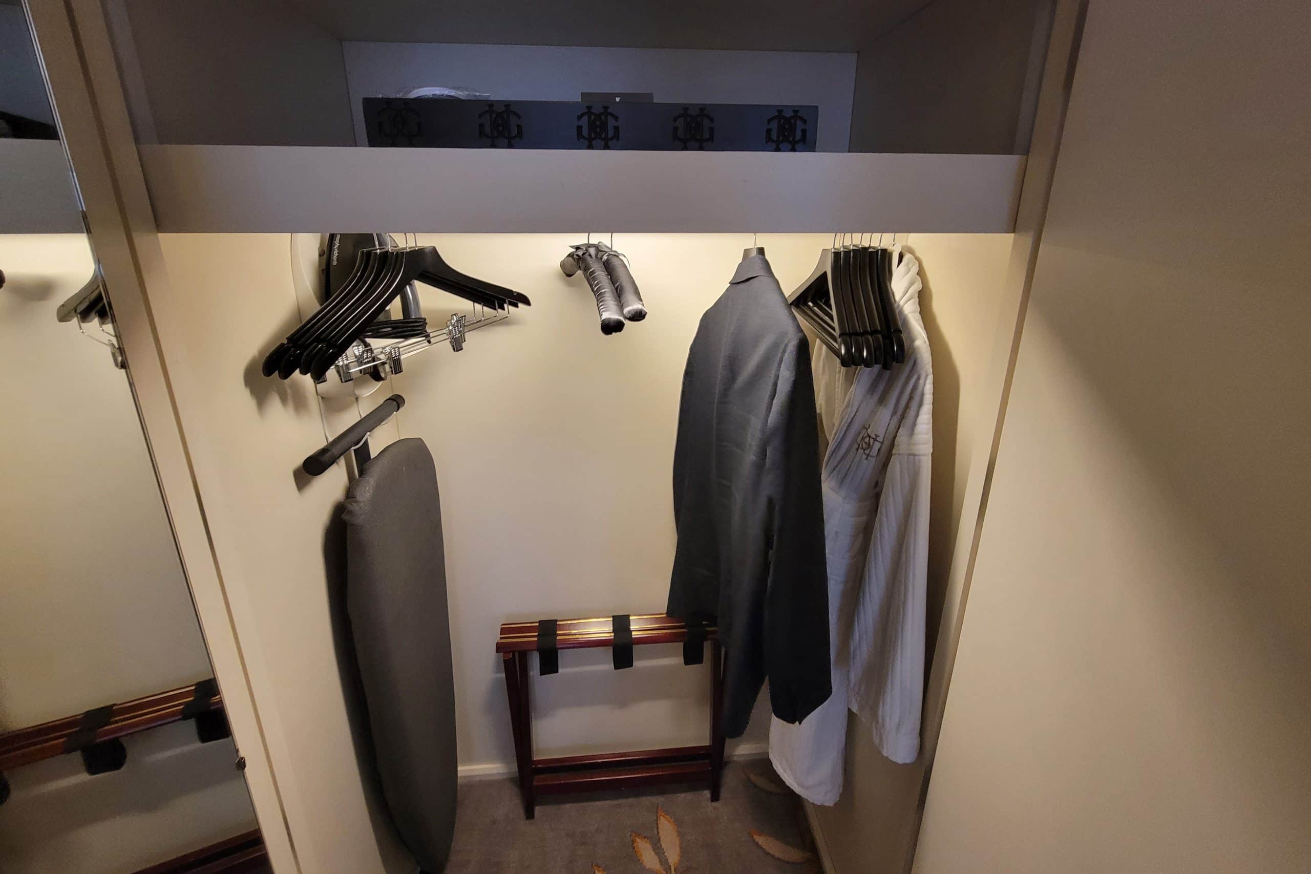 The TV also couldn’t stream content from a smartphone like those in newer hotels are now able to do. The living area had a closet with lots of space, given the overall compactness.