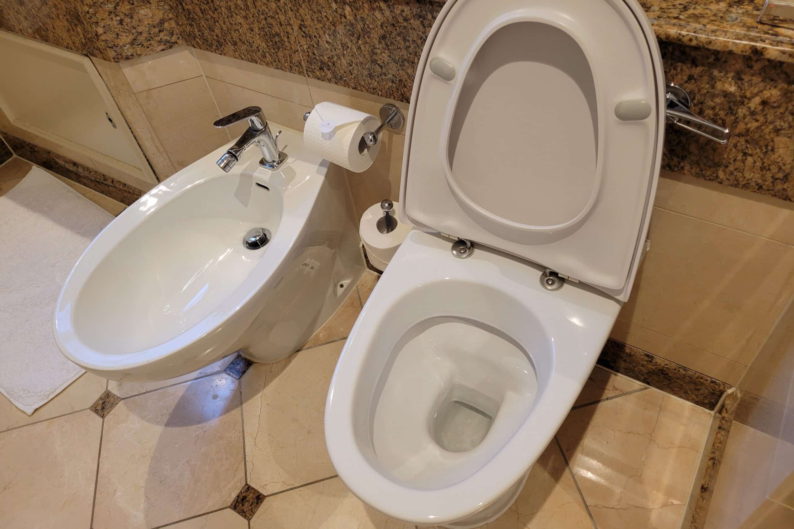 The bathroom was almost as large as the main bathroom, and featured a toilet, bidet, and a variety of yet more branded swag, all of which was appreciated. The marble and granite design made this room feel much nicer than the slightly tired bedroom.