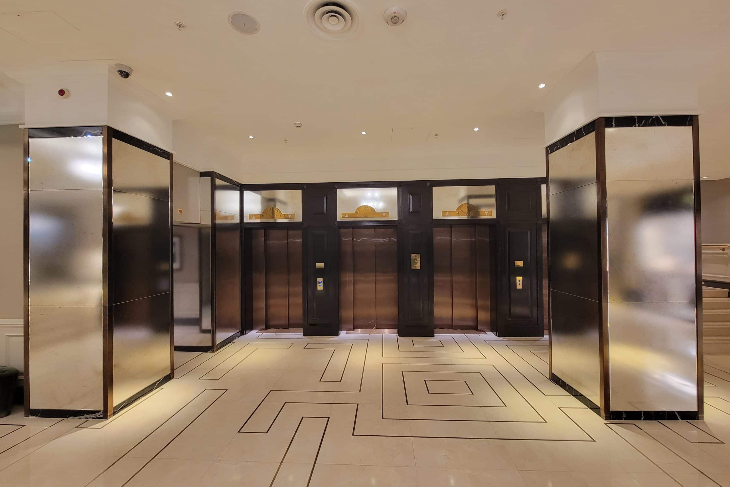 The lobby area was equally grandiose, where marble, brass, and amber light combined to make the guest feel as if they’d just walked into one of the works of Sir Arthur Conan Doyle. And the lounge chairs were plushy and genteel enough for Holmes and Watson, too.