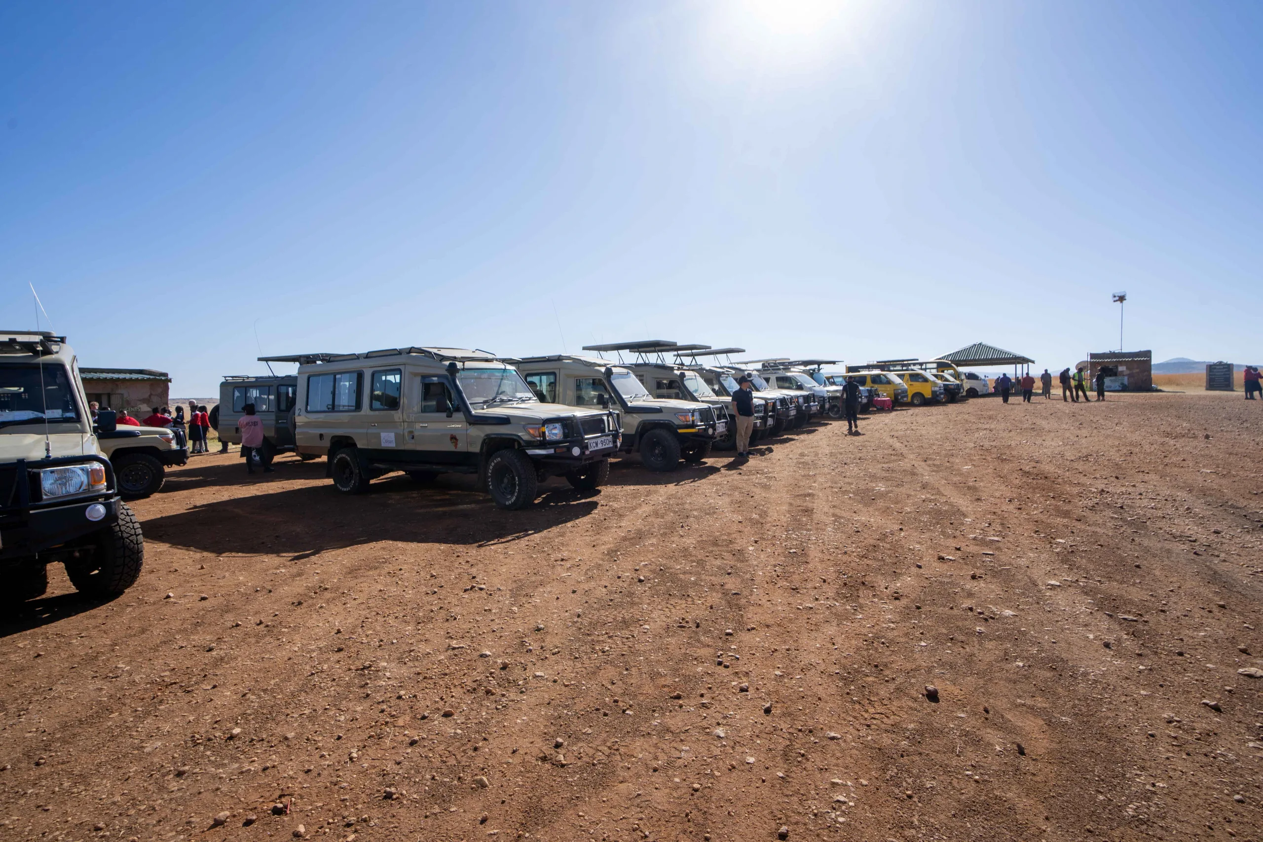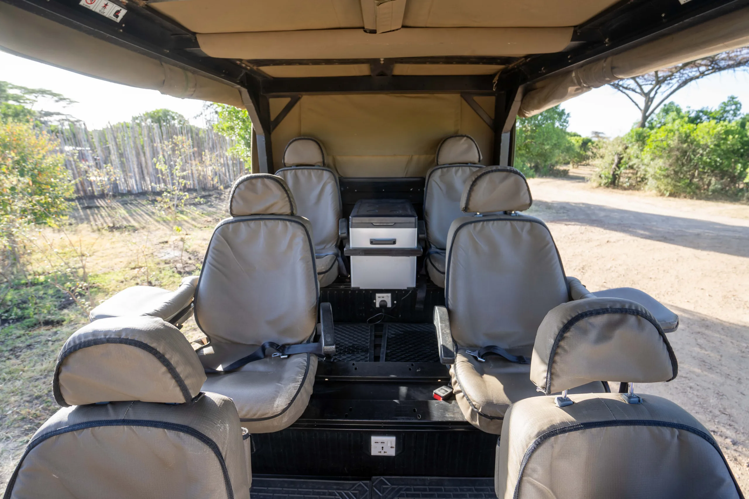 Each vehicle is equipped with a selection of amenities to enhance your comfort while navigating the park. Complimentary sunscreen, hand sanitizer, and binoculars are provided, alongside a fridge filled with complimentary drinks. Furthermore, universal power outlets and USB-A ports are available for use.
