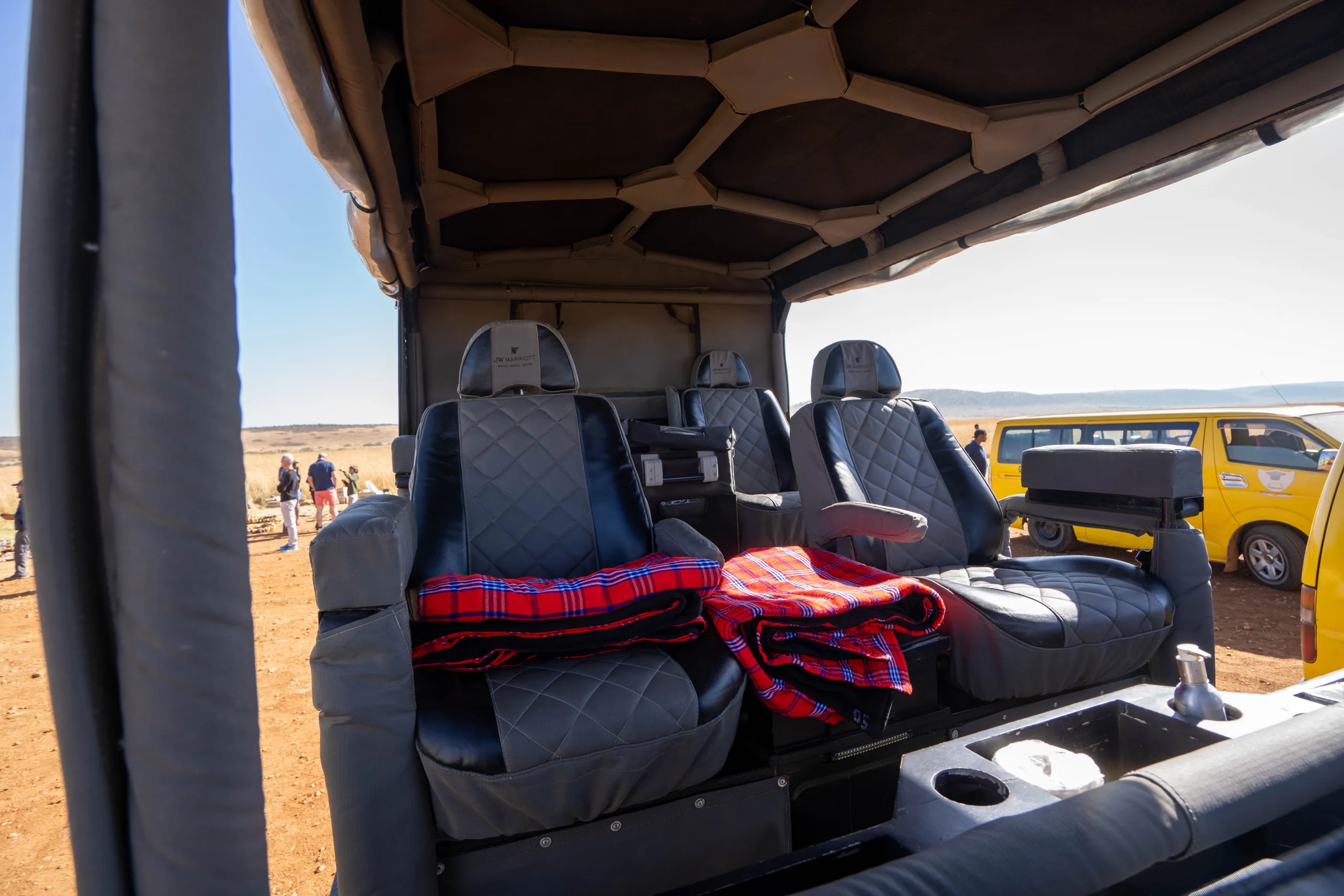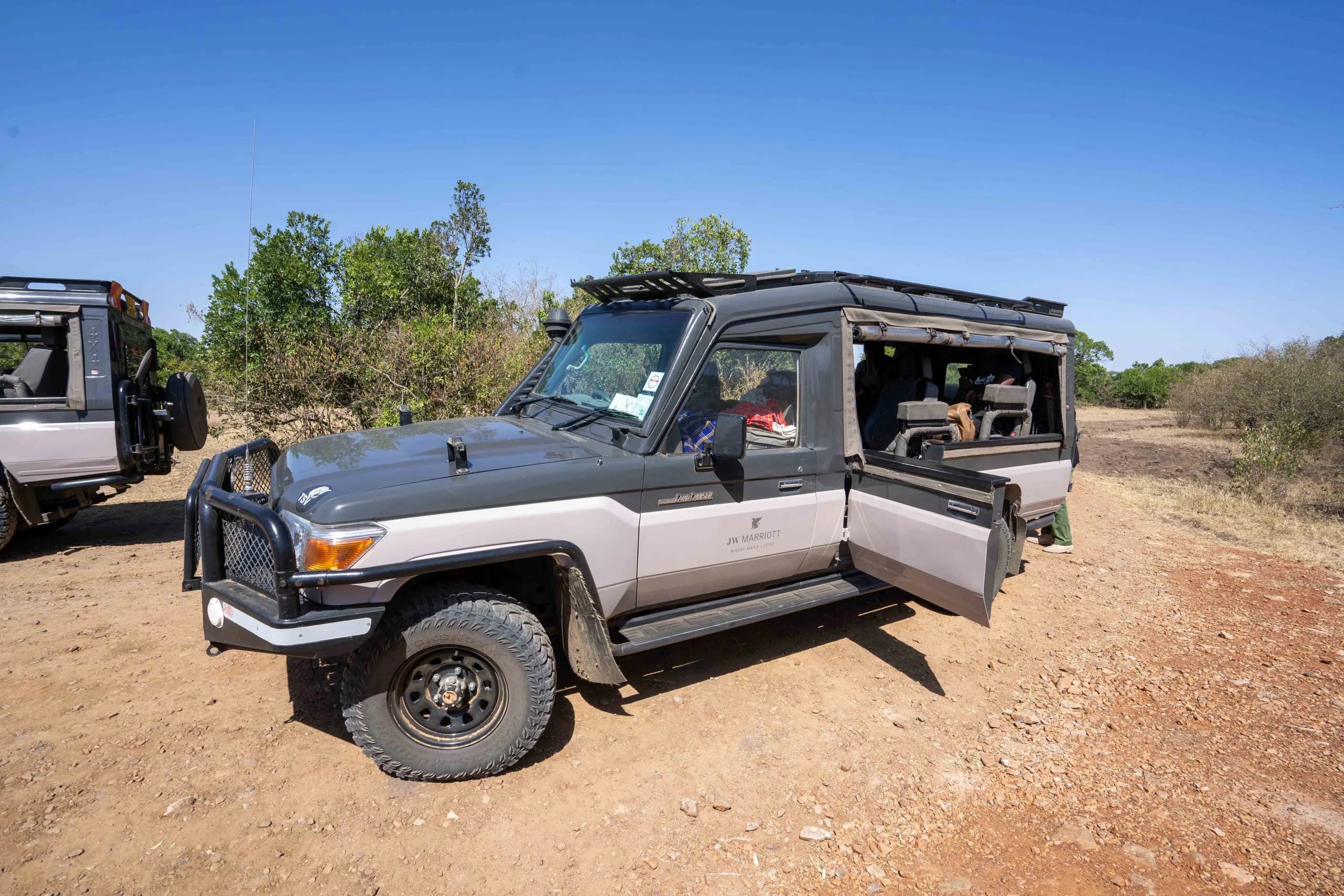 The JW Marriott Masai Mara Lodge employs custom-built Land Rovers, with either four or six seats. These are notably impressive vehicles, with an open-air design that affords direct views of the passing wildlife.