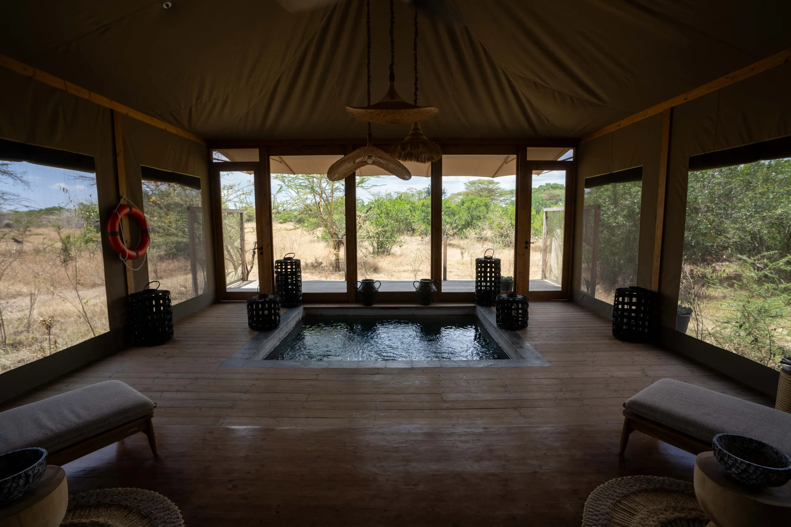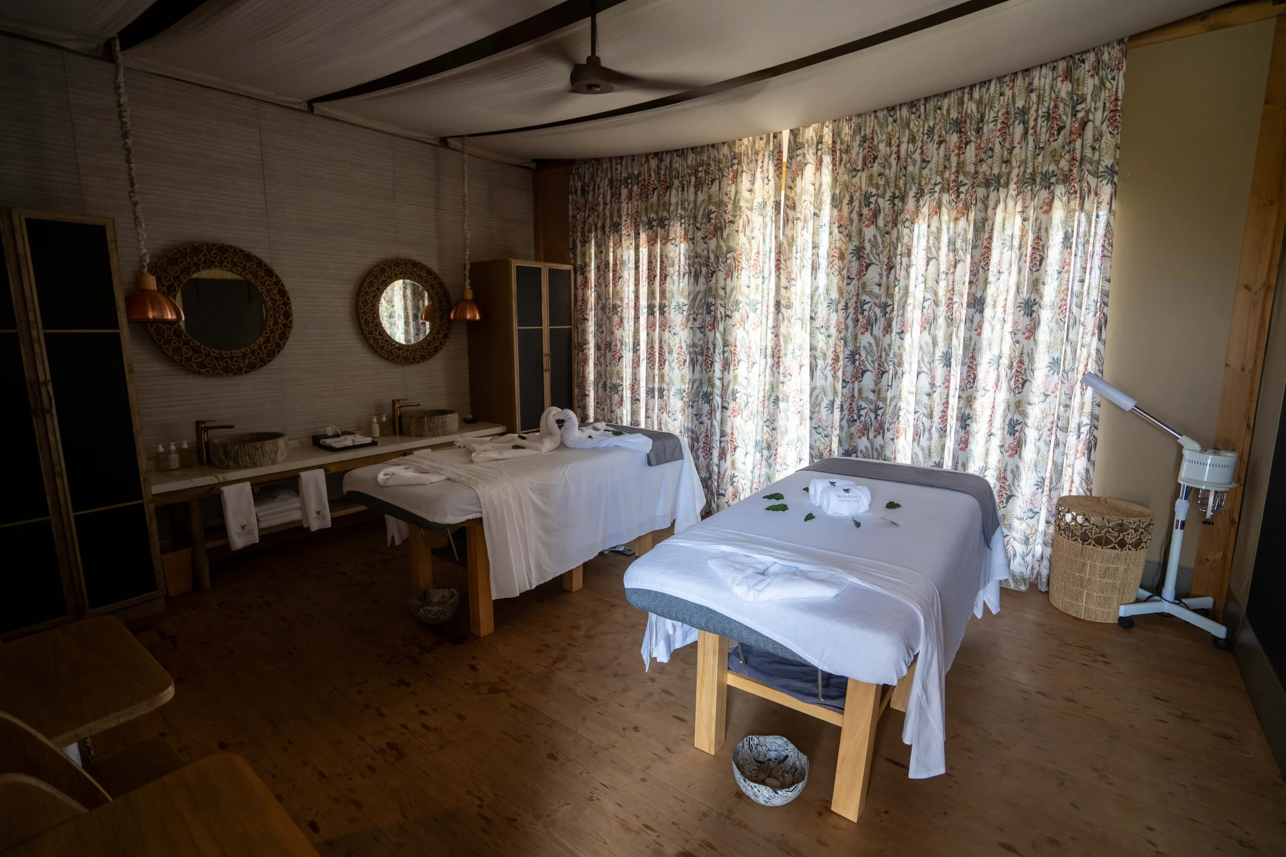 Adjacent to the pool, the JW Marriott Masai Mara Lodge’s spa is nestled within three tents, with two treatment rooms overlooking the bush.