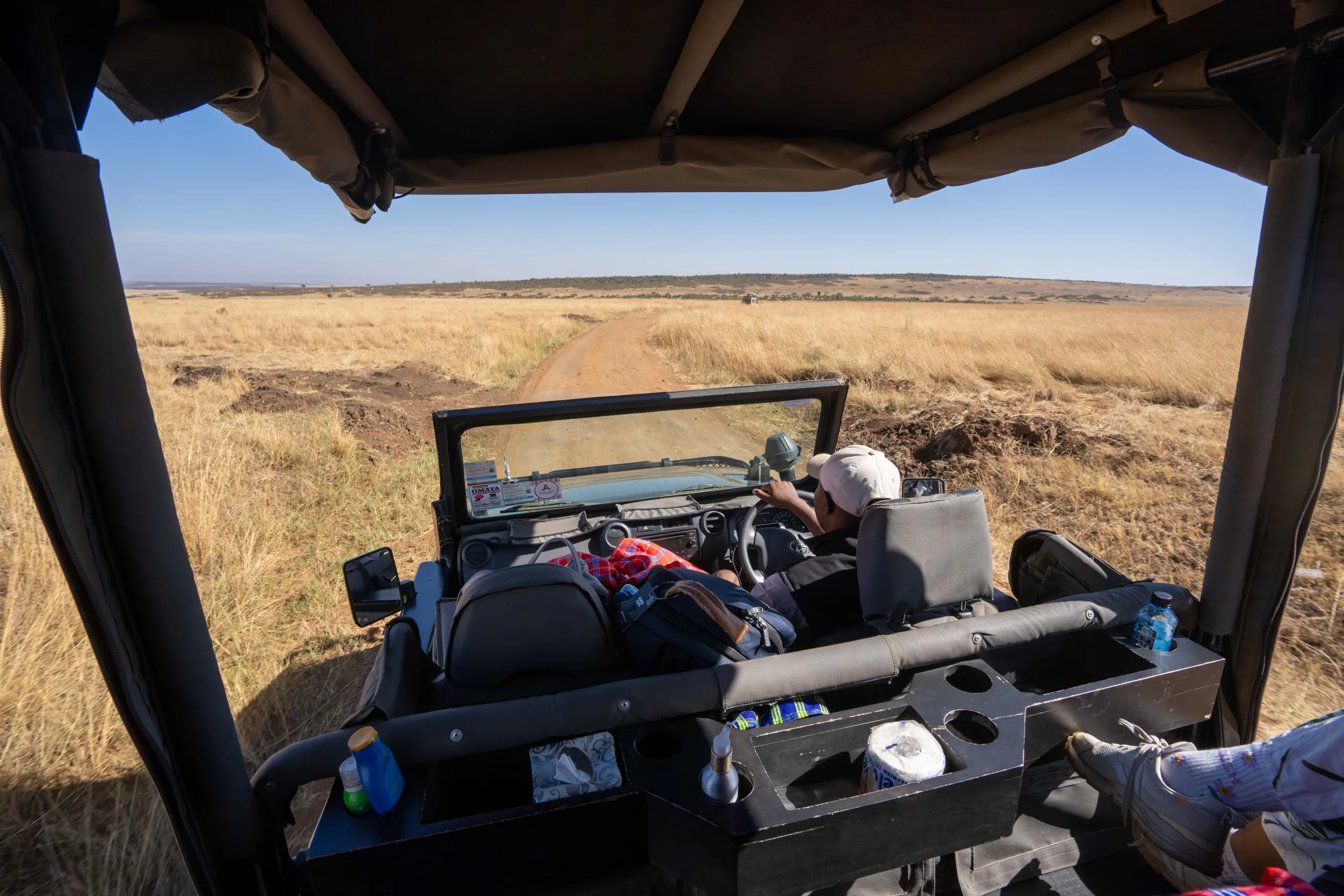 The Land Rovers contrast with the more conventional safari vehicles that you’ll see around the Mara, which feature glass panes and a retractable roof that you’re supposed to peek through.
