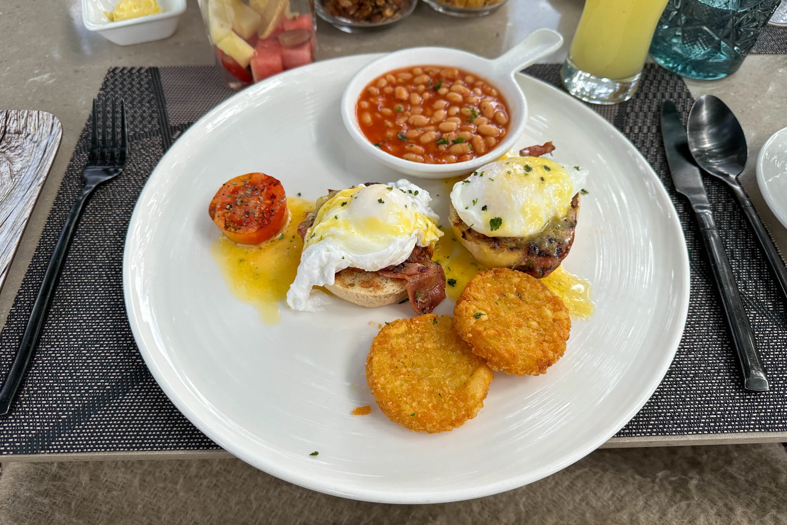 The breakfast offerings were standard yet satisfying, featuring a selection of eggs, proteins, and healthy options. I took a particular liking to the omelette.