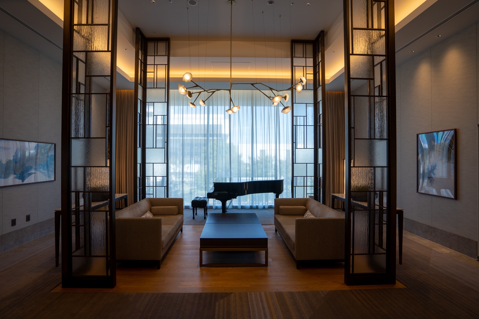 The property’s exterior is a dark steel façade, but upon entering the hotel, the lobby of the JW Marriott Nara has a bright, inviting, and serene atmosphere.