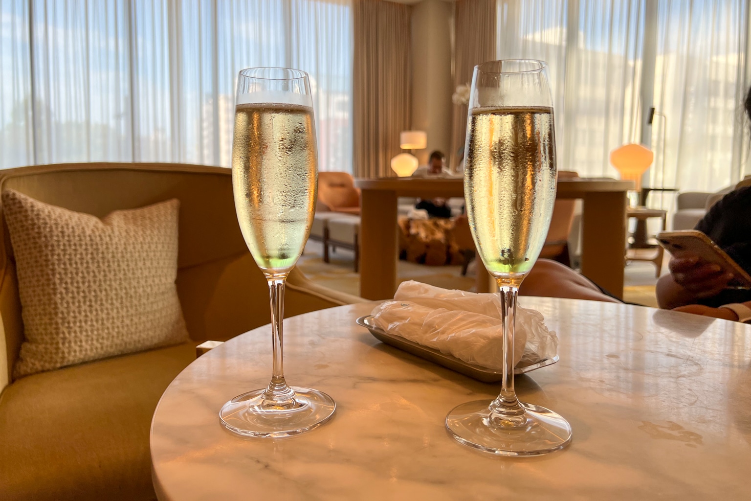As an elite member, you’ll be invited the Executive Lounge to complete the check-in process there. In our case, we were proactively offered a glass of sparkling wine as we completed our check-in.