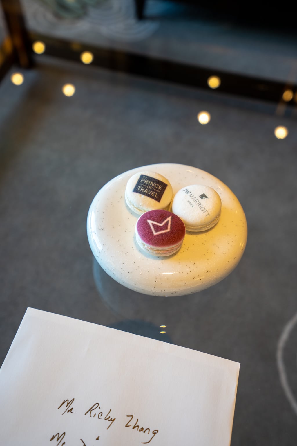 The welcome gift waiting for us on the coffee table was highly impressive. The hotel had printed Prince of Travel logos on the macarons using the hotel’s new food printer, which was a much-appreciated gesture.