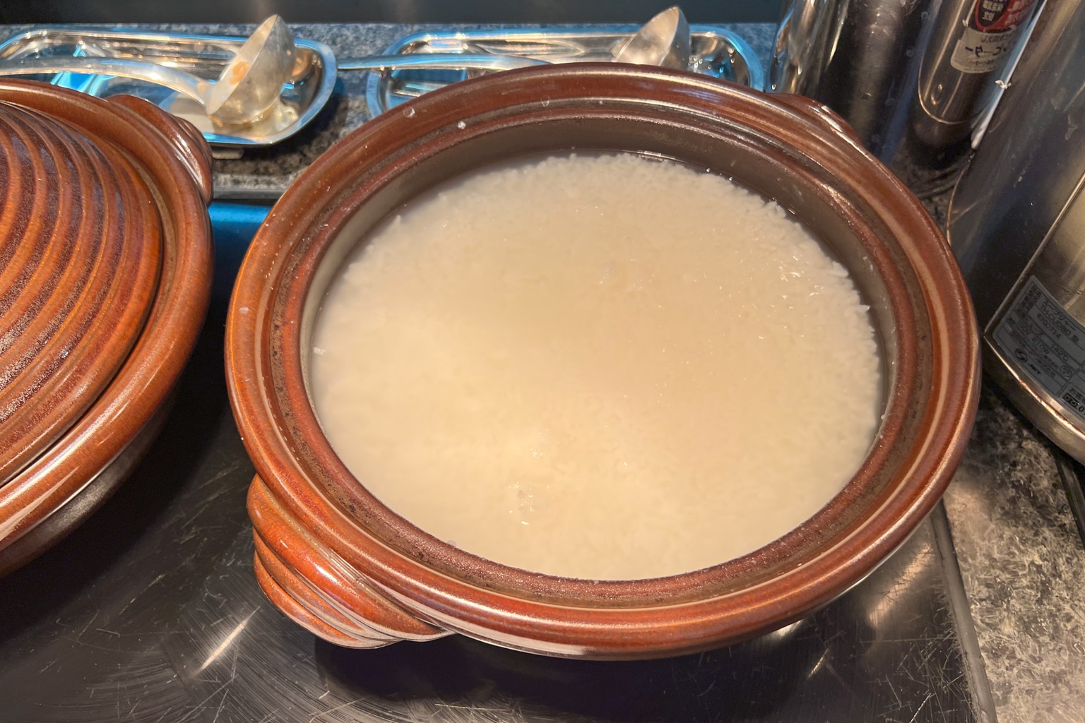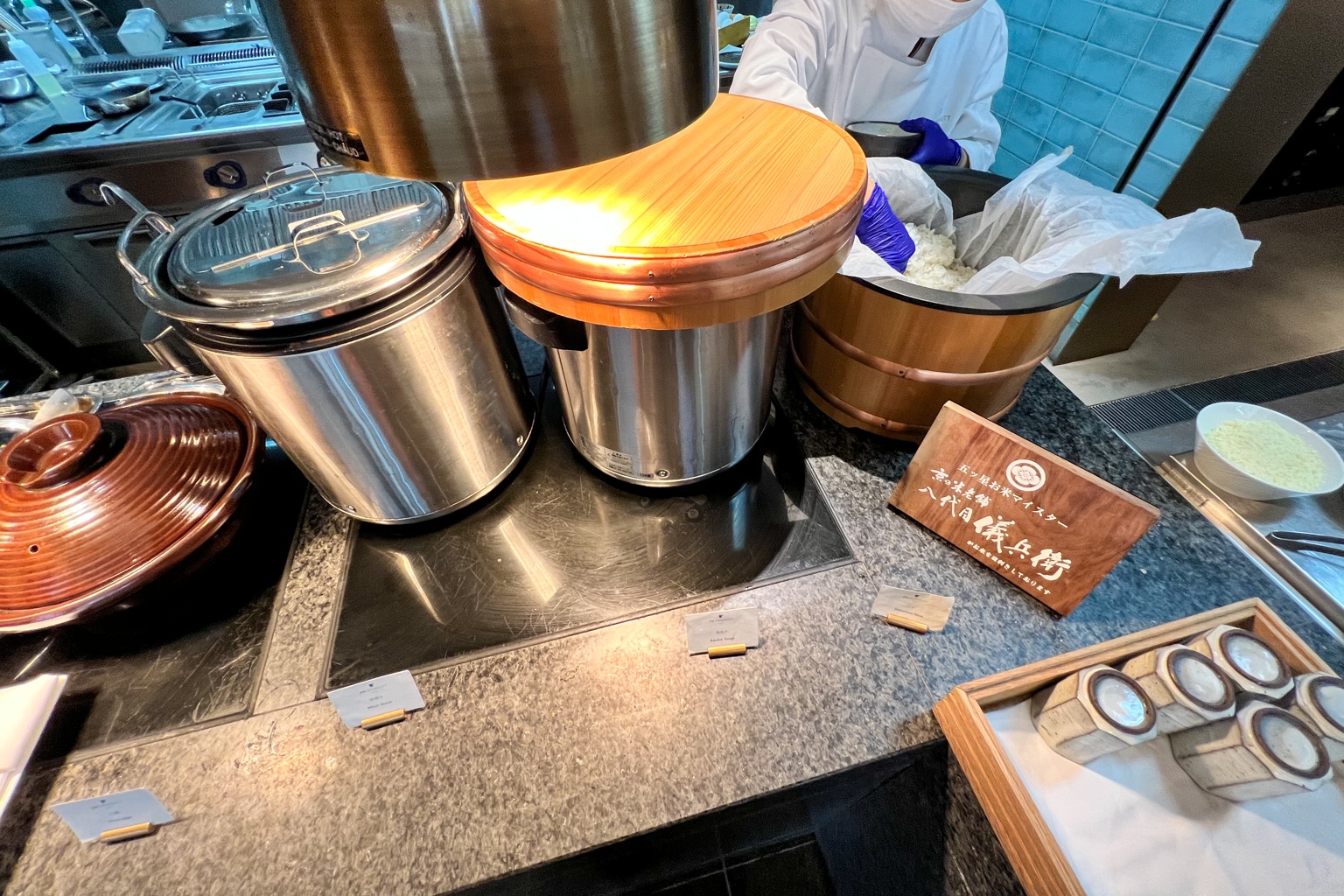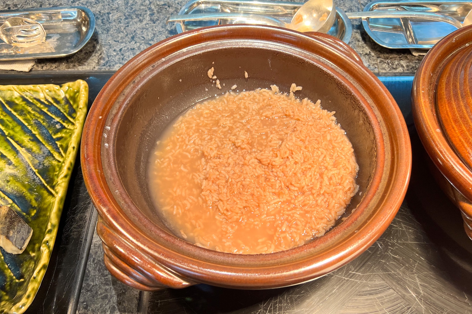 At the buffet, there was a Japanese rice bowl station with all the trimmings, as well as congee and miso soup.