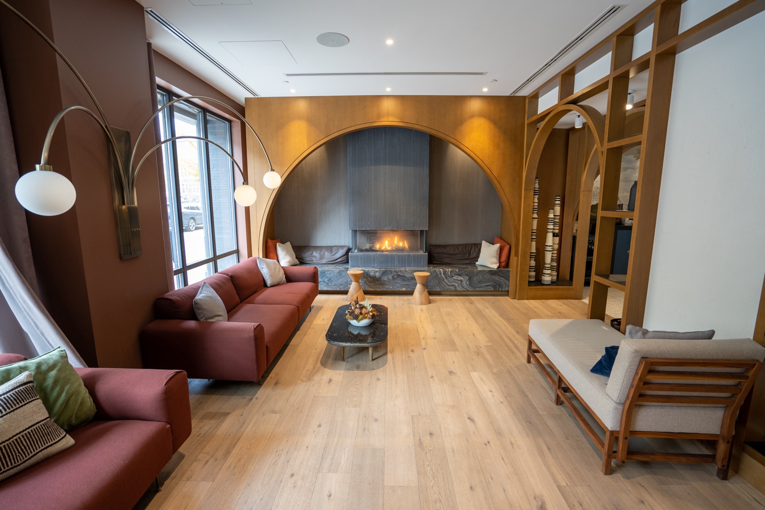 Adjacent to the check-in area is the “living room”, a seating area that boasts cozy couches and an inviting fireplace, which I particularly appreciated.